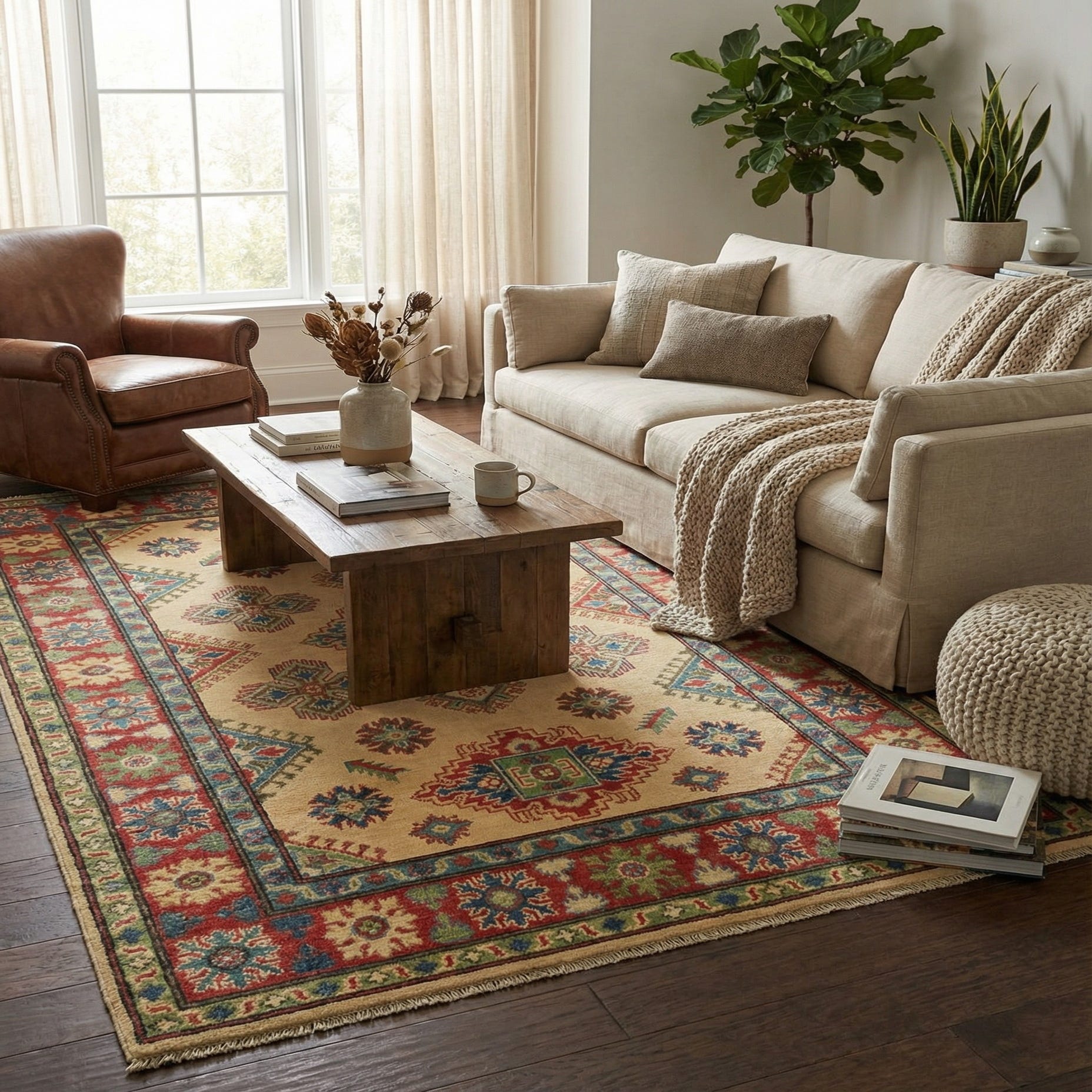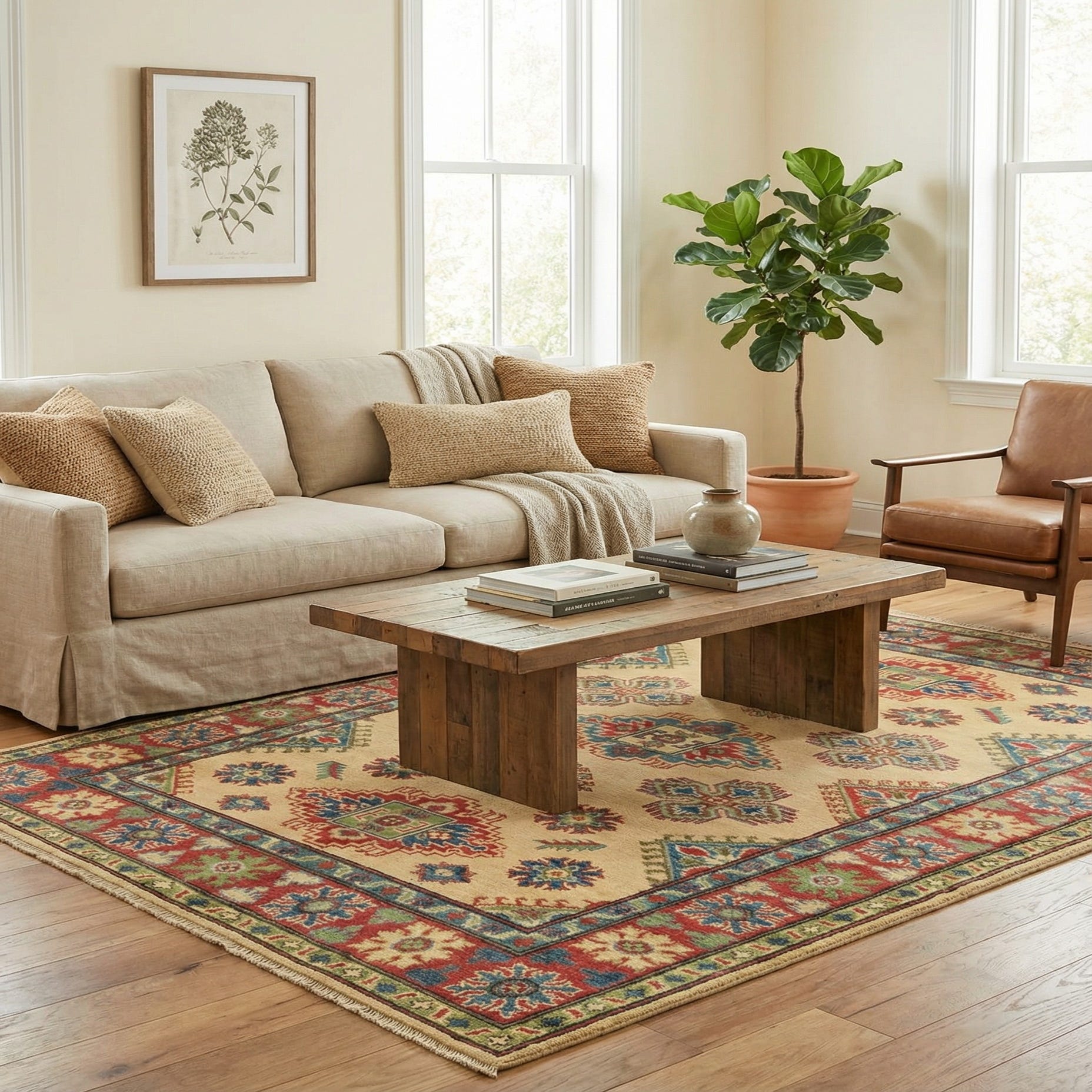 Detail image of 4' 2 x 6'  Hand Knotted Kazak Rug
