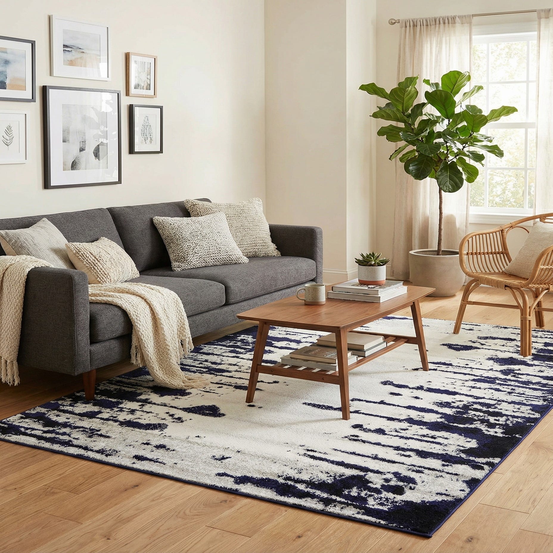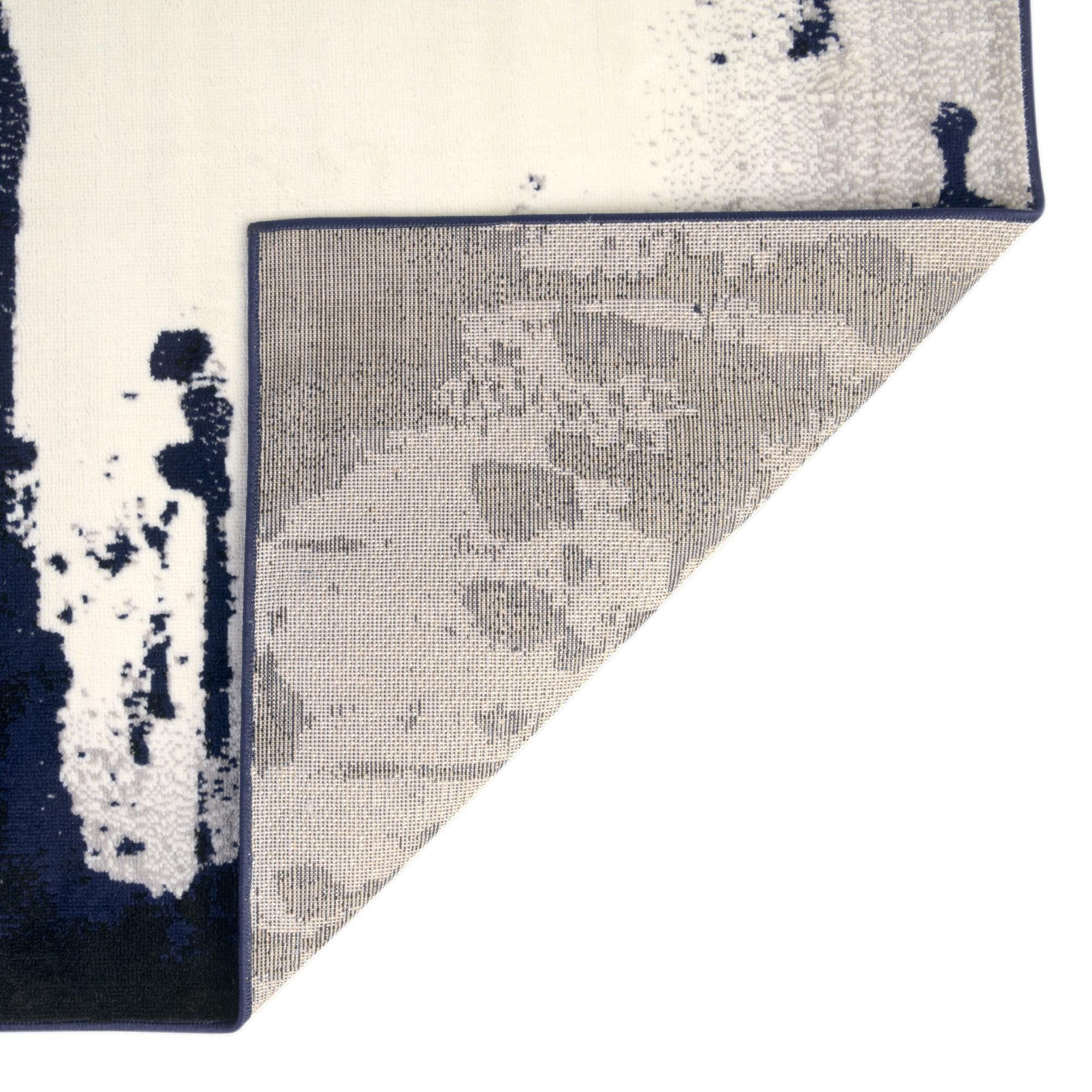 Primary color is Ivory. Colors in this rug include: Ivory, Gray, Navy Blue.