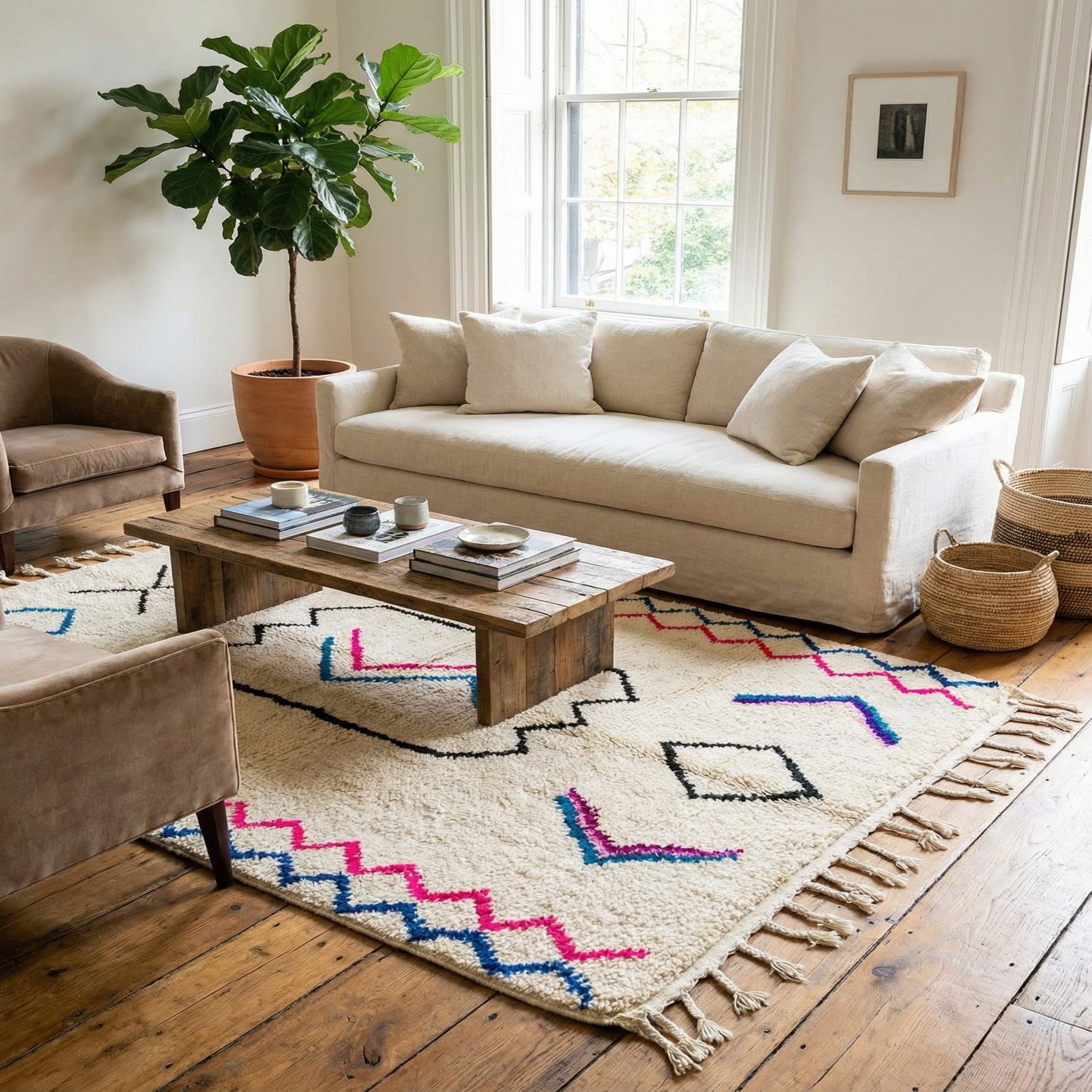 4' 6 x 6' Hand Knotted Moroccan Wool Rug