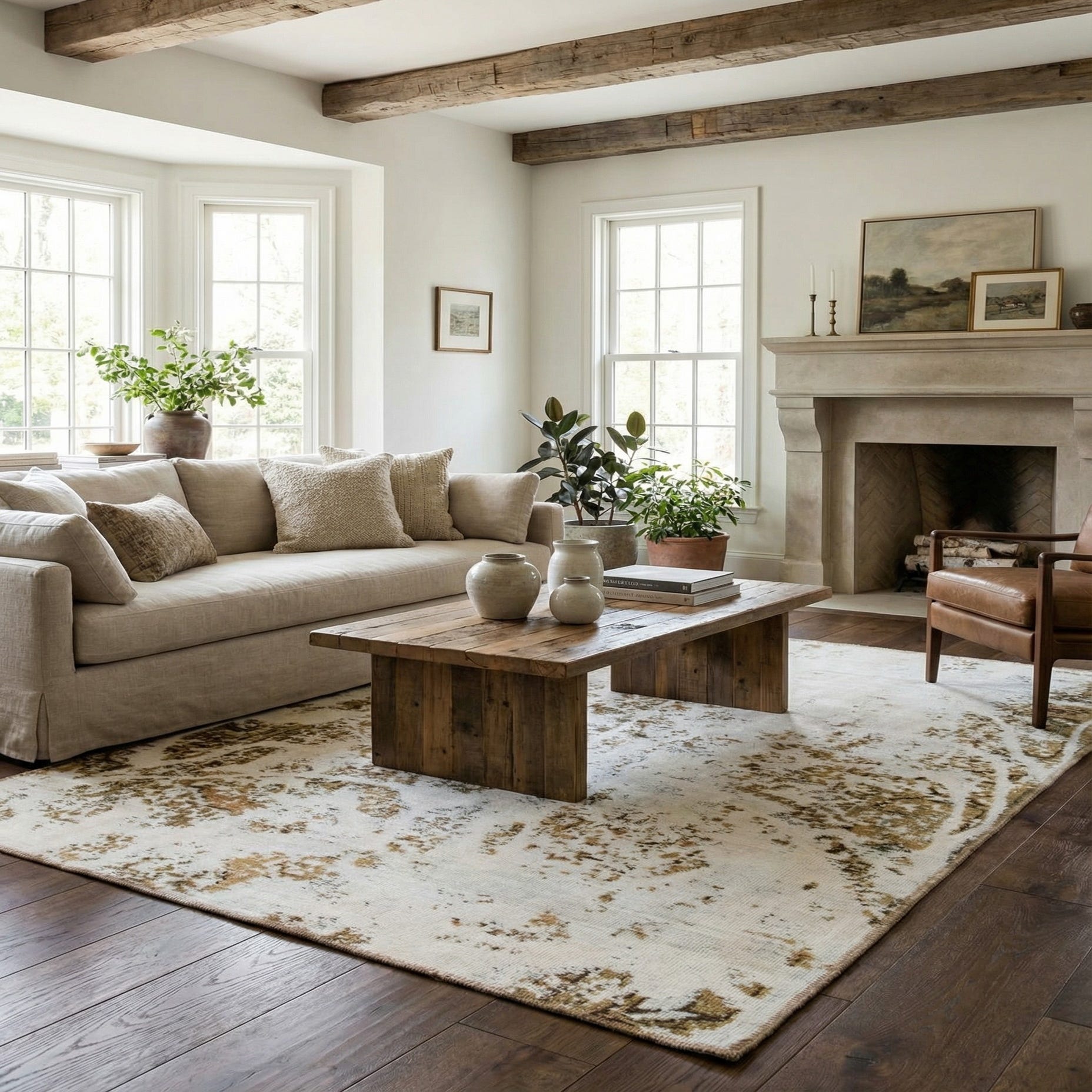 Primary color is Ivory. Colors in this rug include: Ivory, Light Brown, Brown.