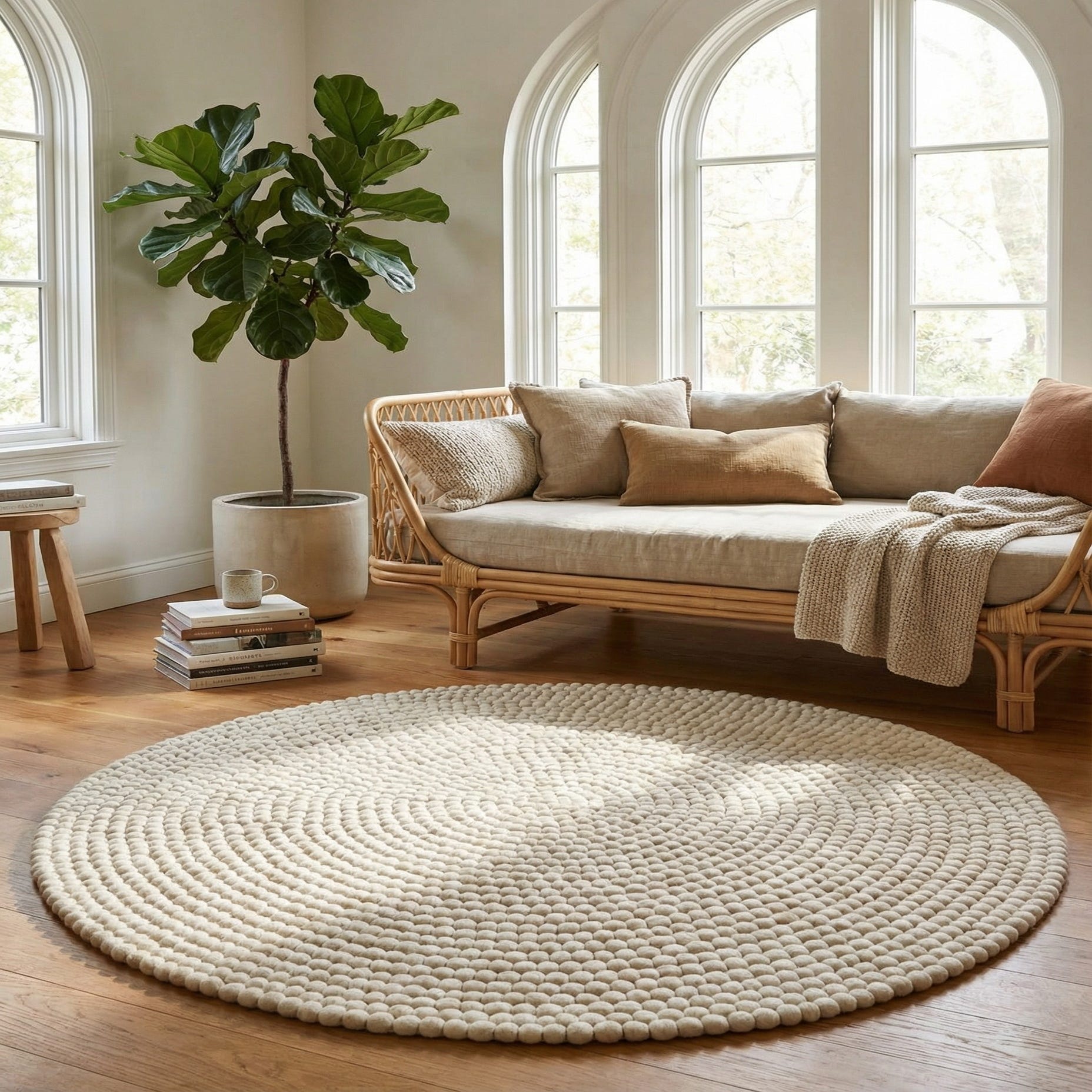 5' x 5' Felt Ball Wool Round Rug