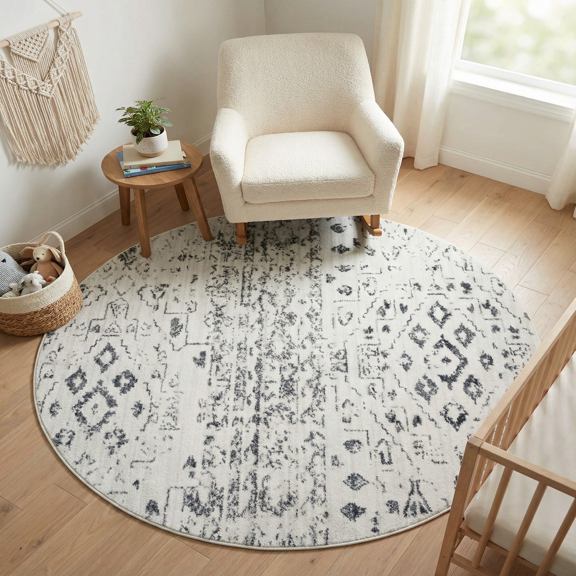 Primary color is Ivory. Colors in this rug include: Ivory, Gray.