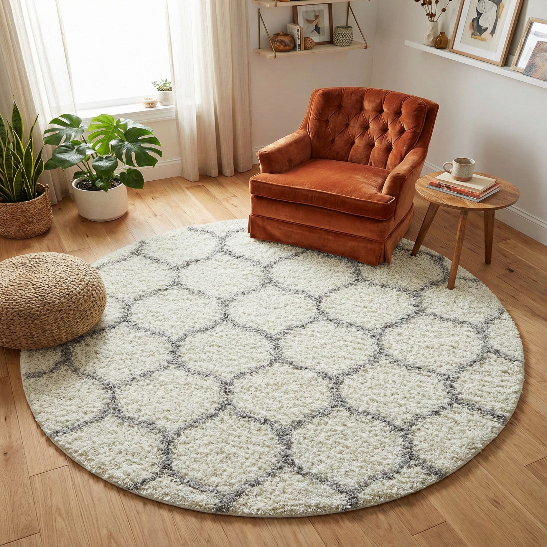 5' 3 x 5' 3 Trellis Shag Round Rug