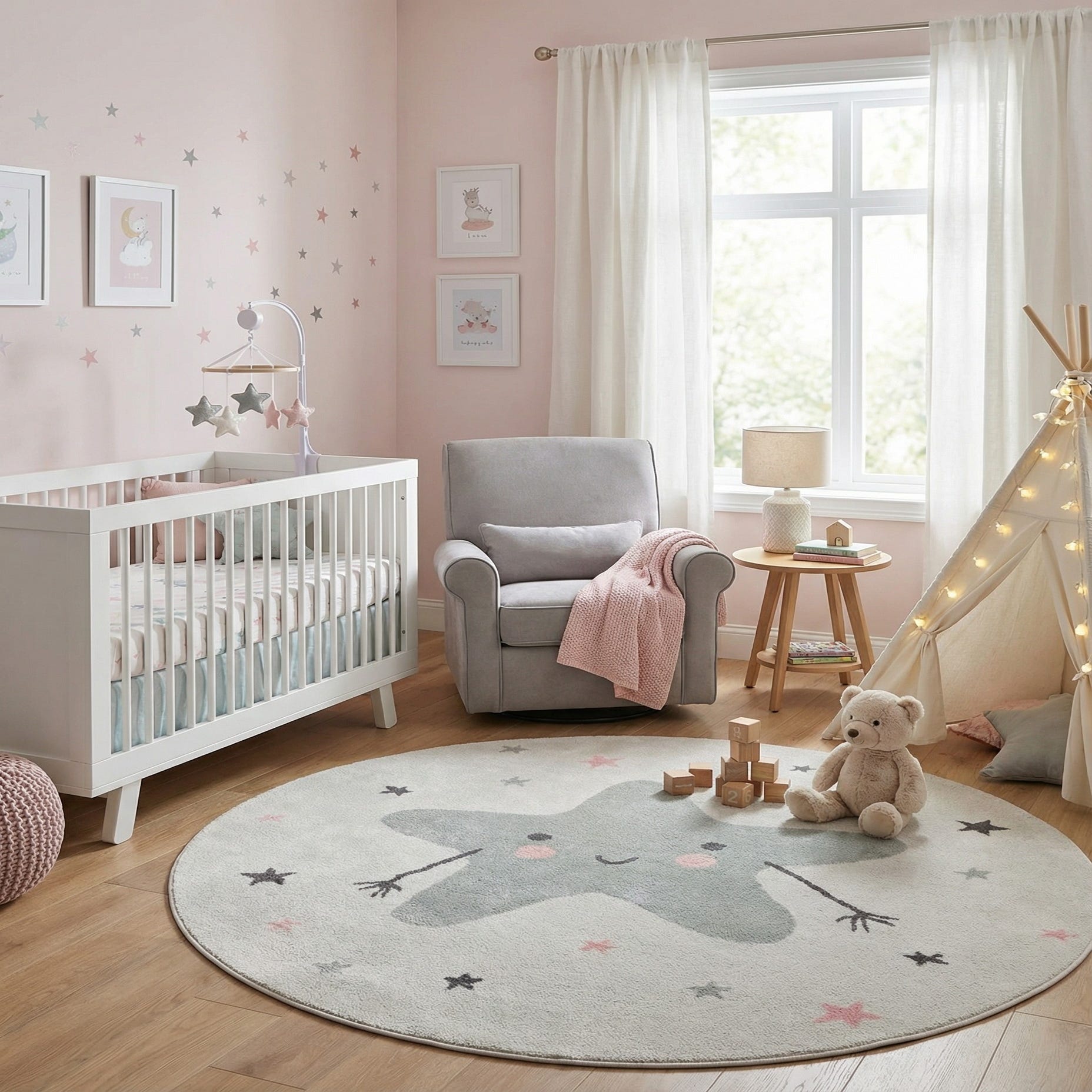 5' 3 x 5' 3 Star Whimsy Kids Round Rug