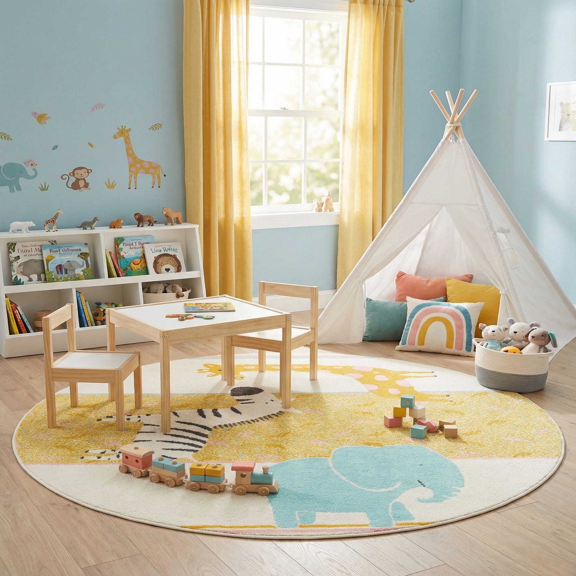 Primary image 5' 3 x 5' 3 Animals Whimsy Kids Round Rug