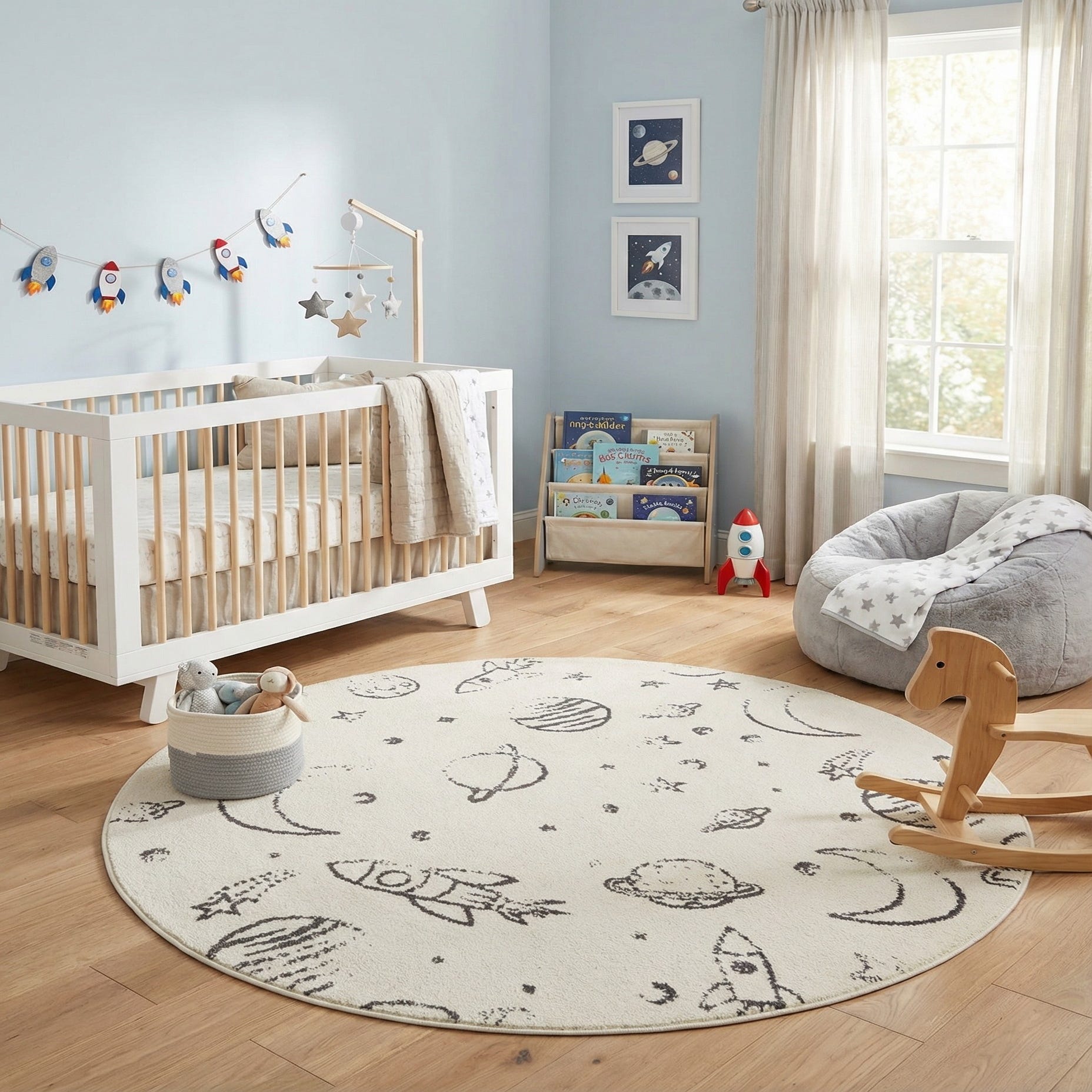 5' 3 x 5' 3 Planets Whimsy Kids Round Rug