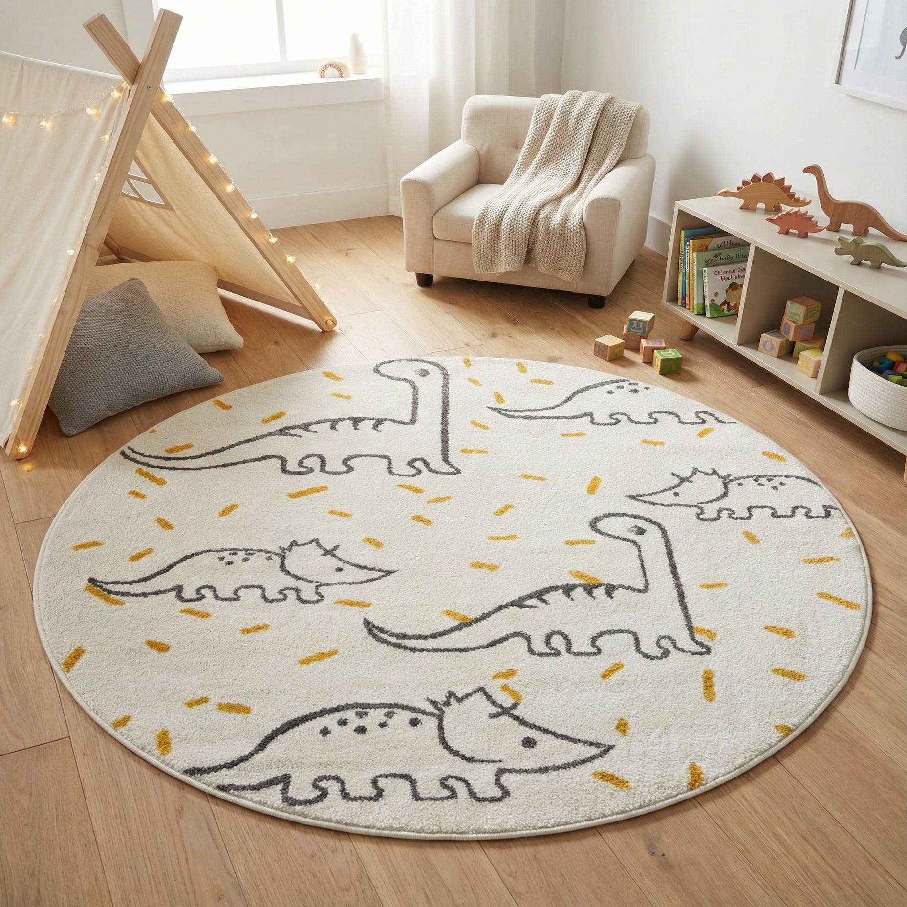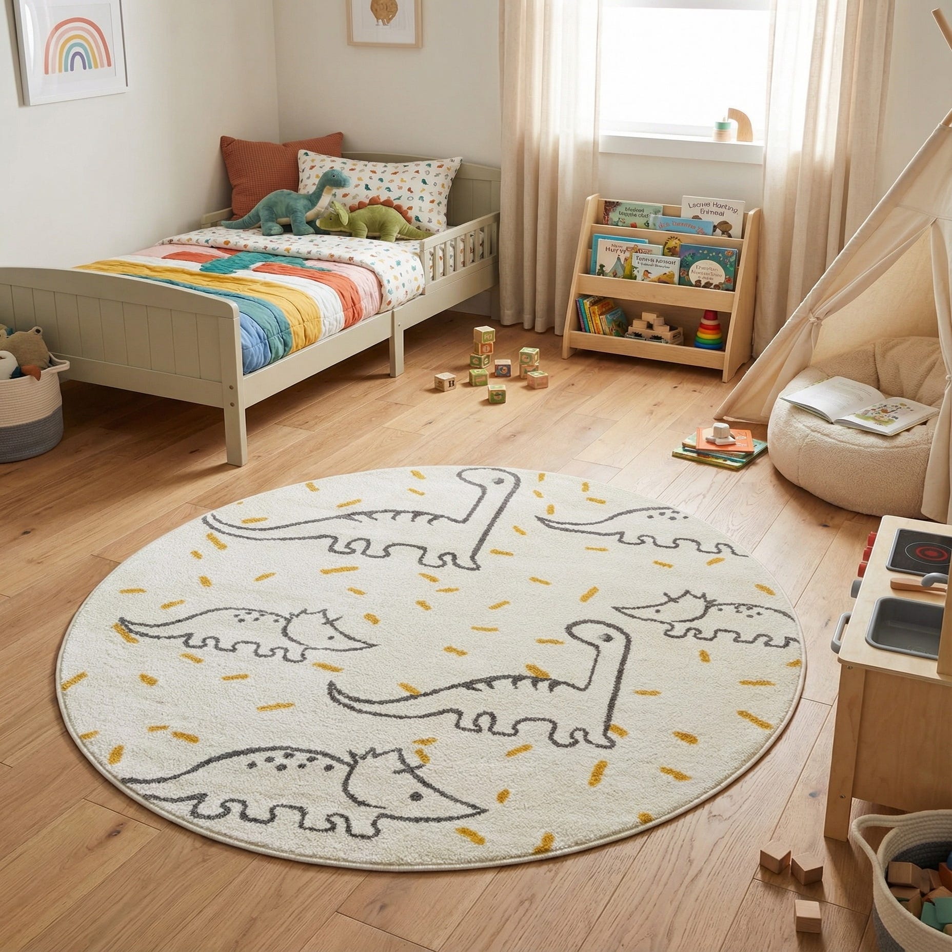 5' 1 x 5' 1 Dinosaur Whimsy Kids Round Rug