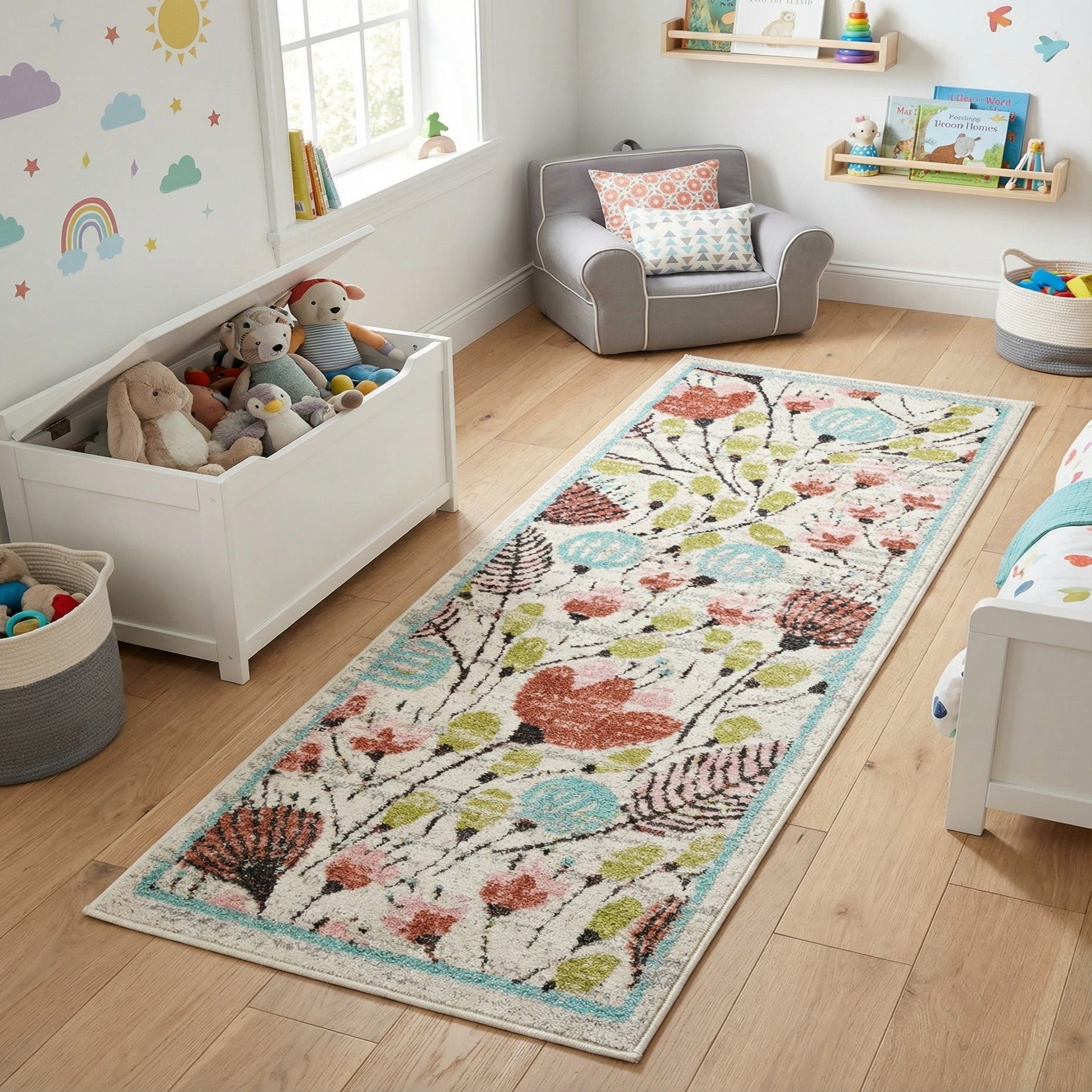 2' x 5' 3 Flowers Whimsy Kids Runner Rug