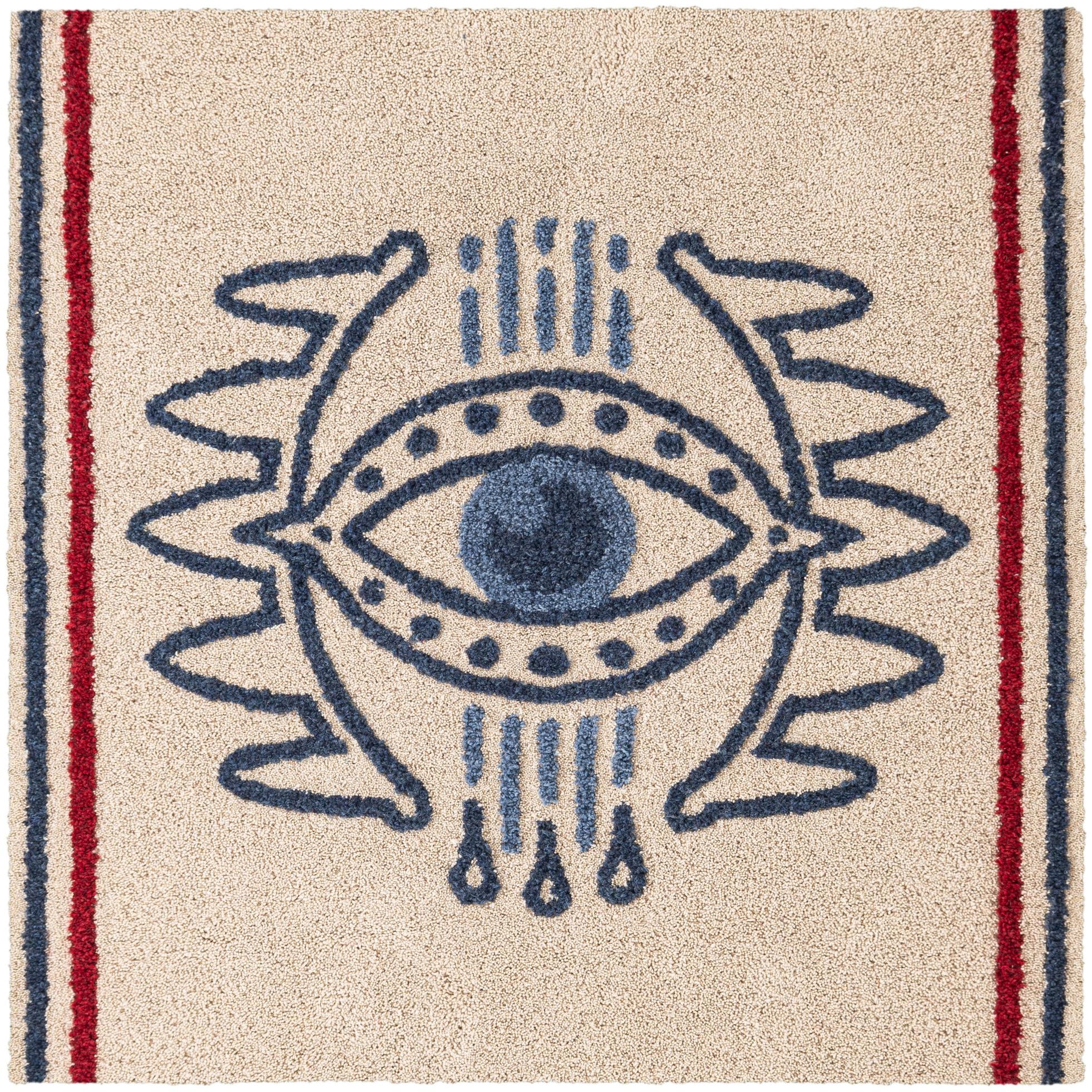 Primary color is Ivory. Colors in this rug include: Ivory, Blue, Red, Navy Blue.