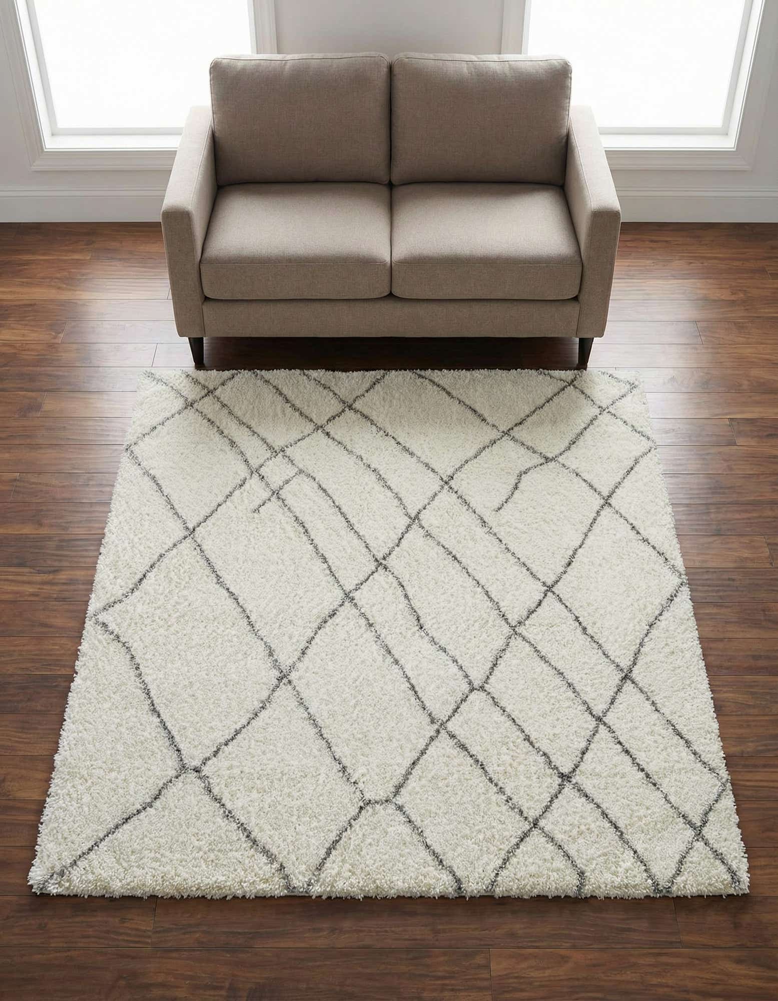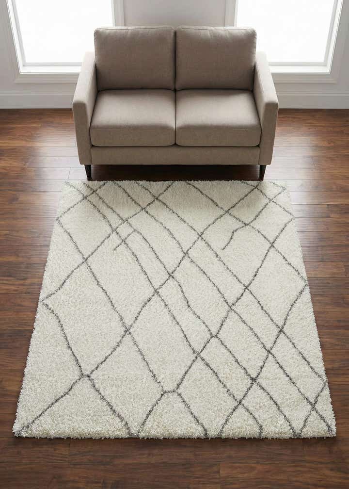 Primary color is Ivory. Colors in this rug include: Ivory, Gray.