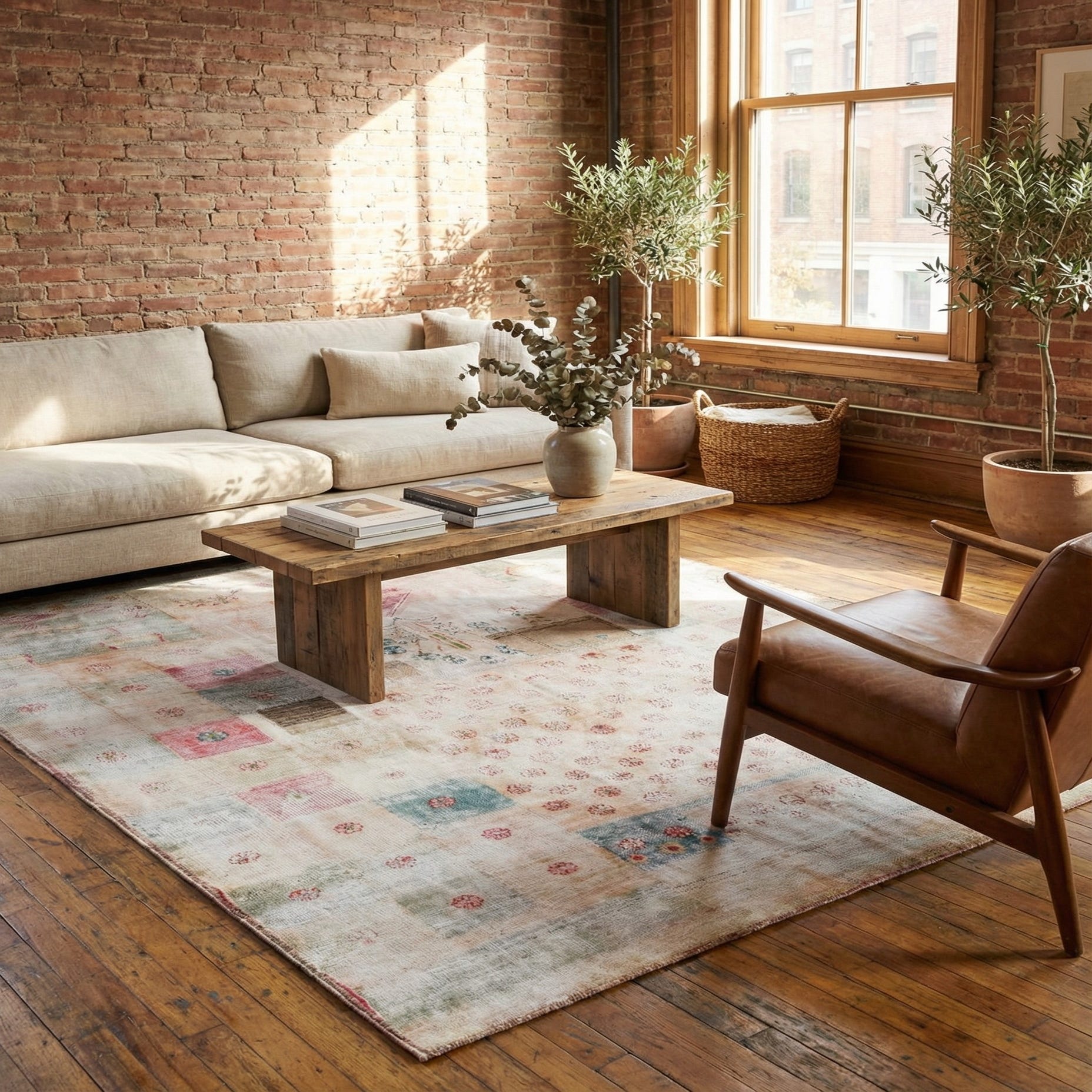Detail image of 4' 7 x 5' 6  Hand Knotted Ultra Vintage Persian Wool Square Rug