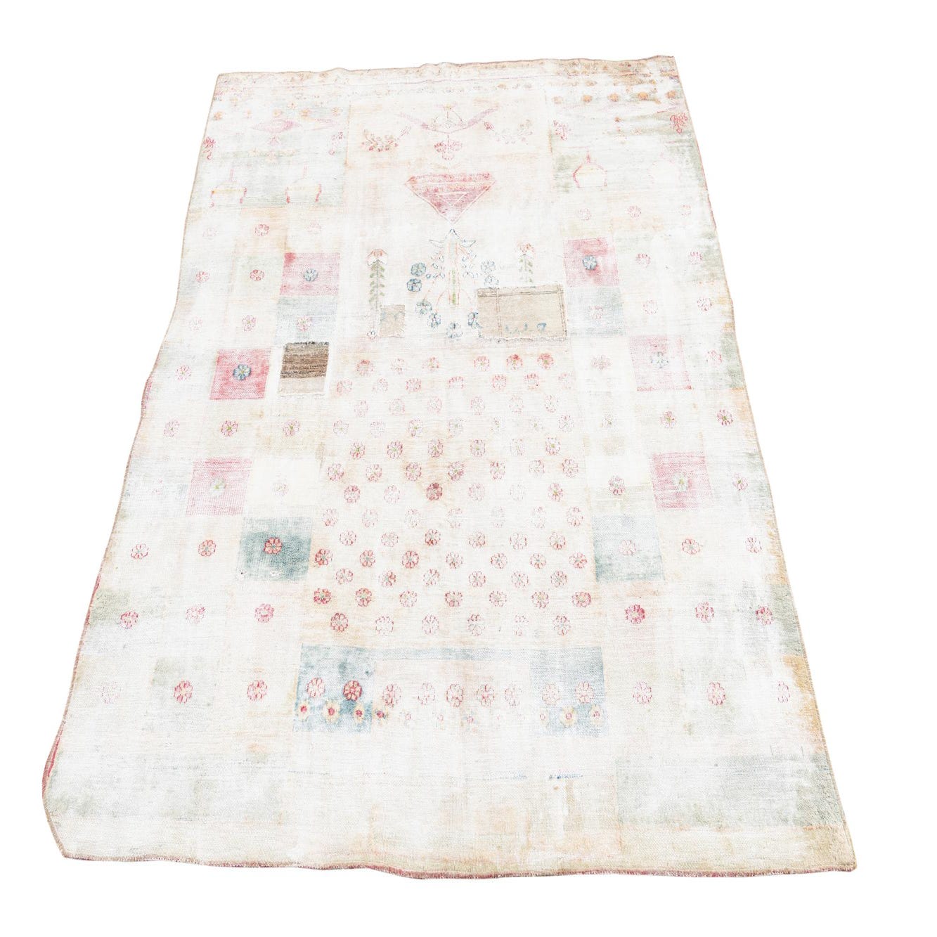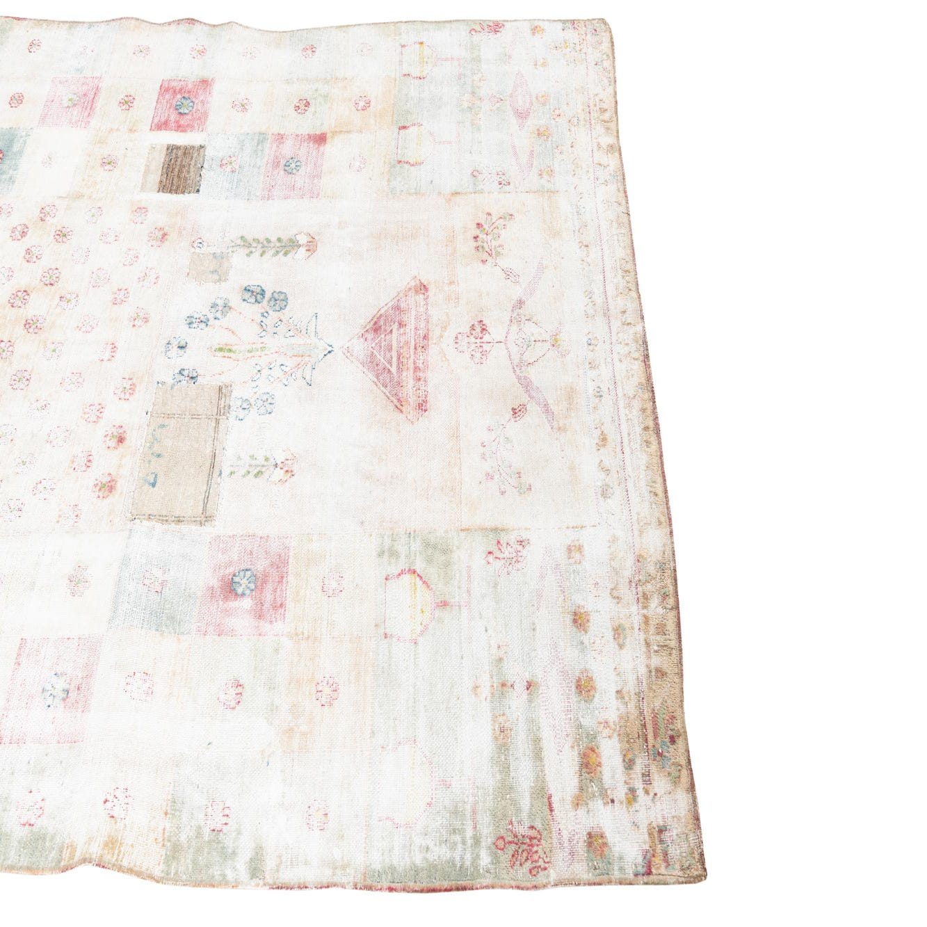 This Persian Ultra Vintage rug is an antique Persian Rug that has been washed, over-dyed, and then shaved down to a low pile. Look at the detail pictures to fully appreciate the uniqueness of this piece.