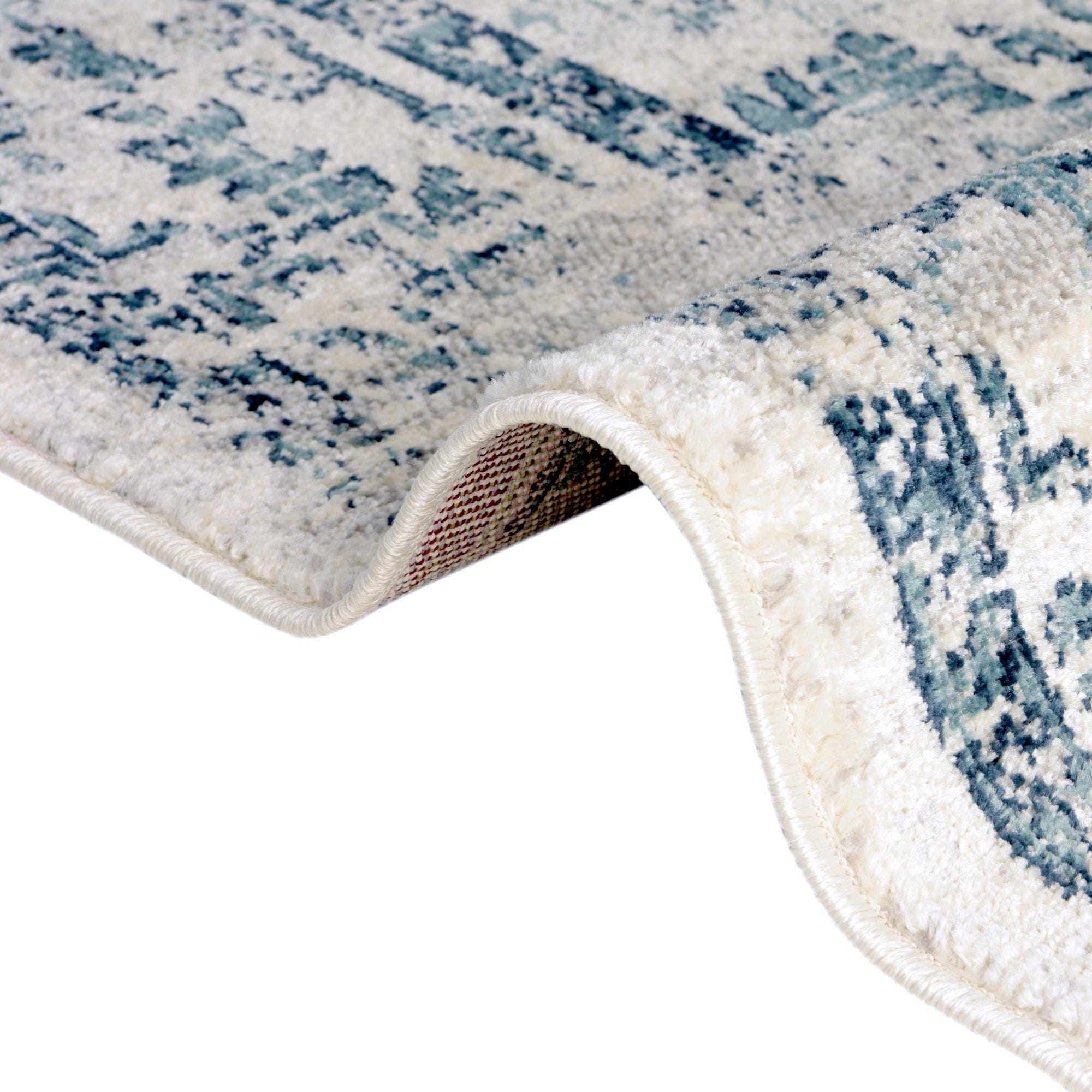 Primary color is Ivory. Colors in this rug include: Ivory, Blue, Gray, Navy Blue.