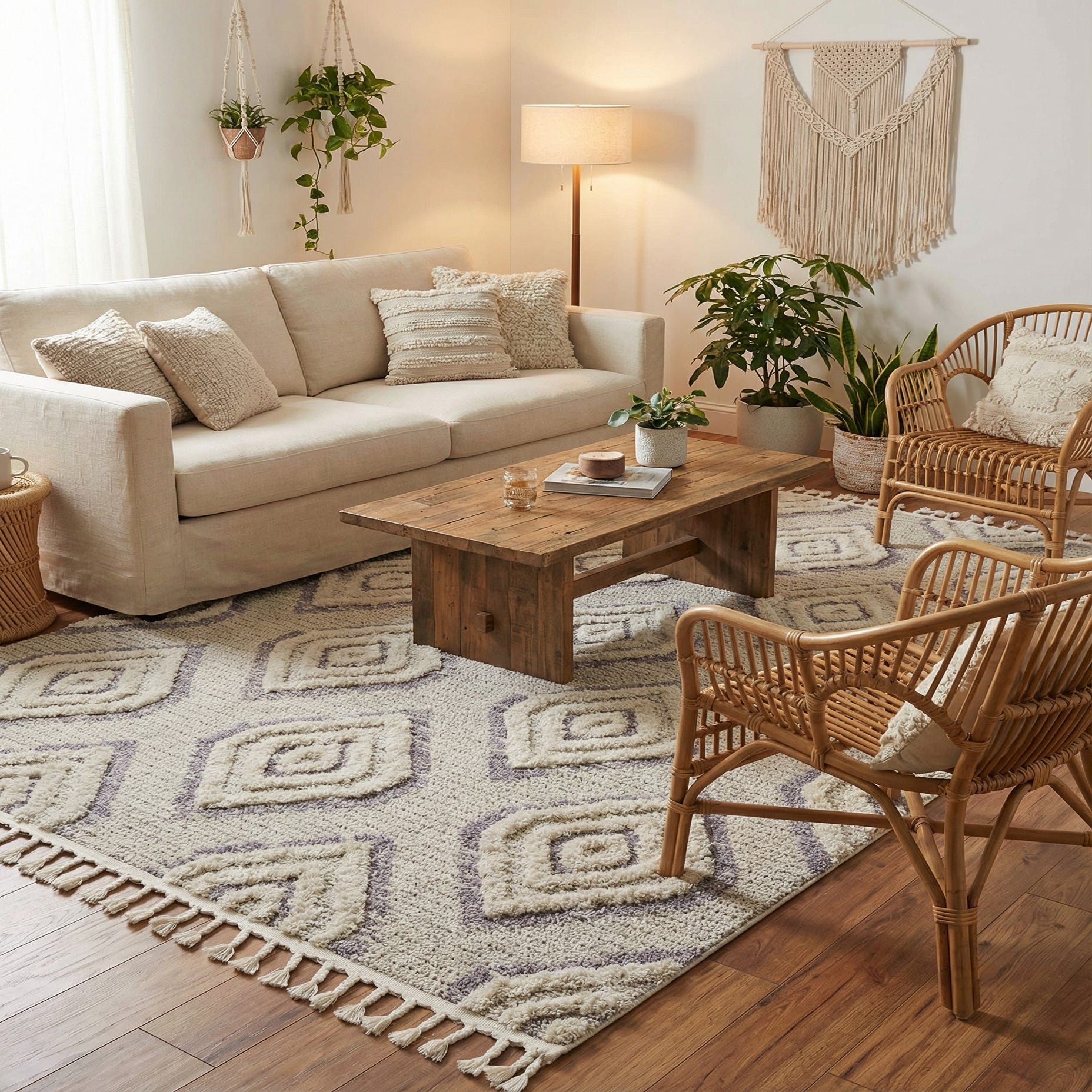 Primary color is Ivory. Colors in this rug include: Ivory, Gray.