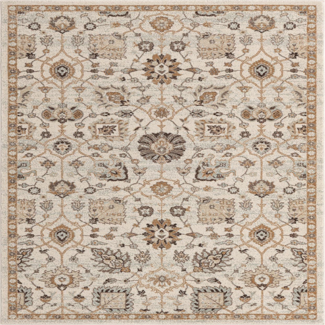 Primary color is Ivory. Colors in this rug include: Ivory, Brown, Cream, Gray, Tan.
