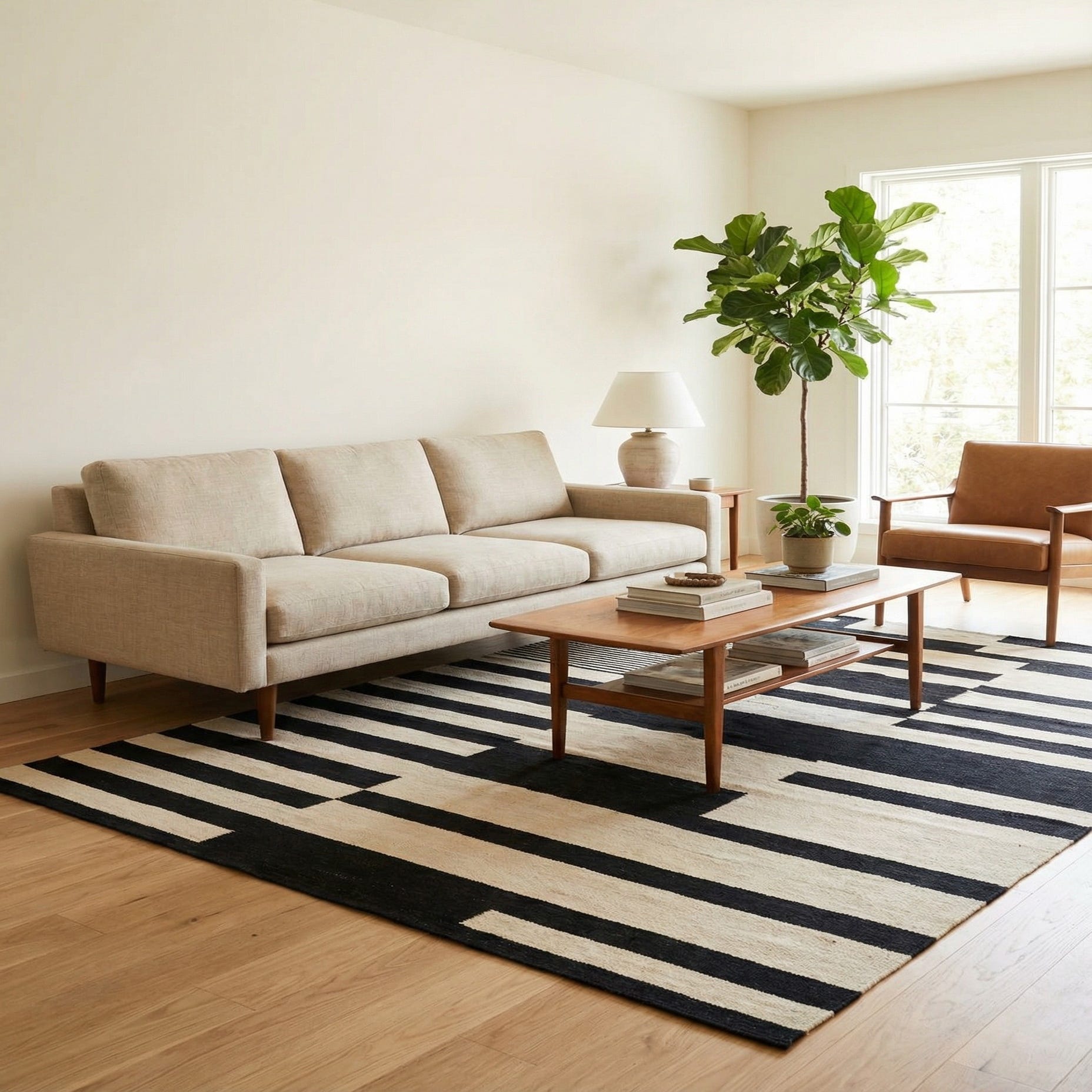 Primary color is Ivory. Colors in this rug include: Ivory, Black.