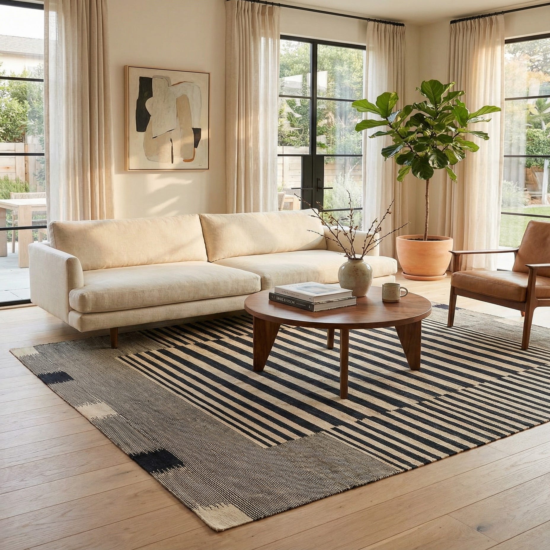 Primary color is Ivory. Colors in this rug include: Ivory, Black.