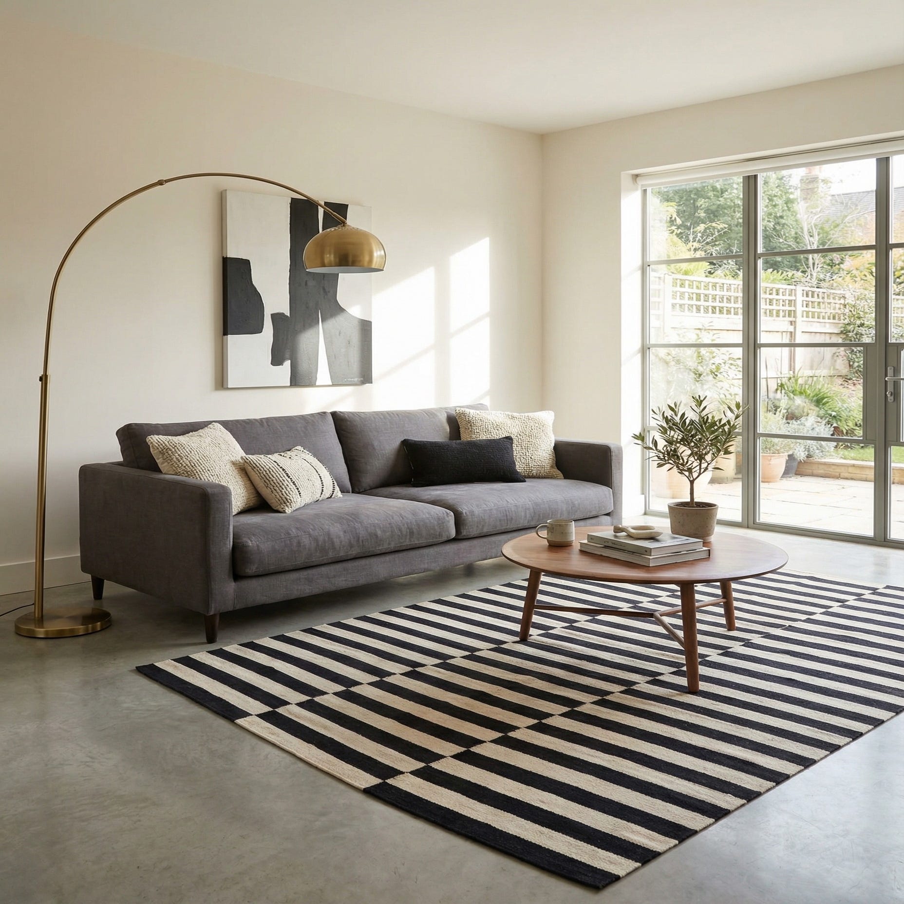 Primary color is Ivory. Colors in this rug include: Ivory, Black.