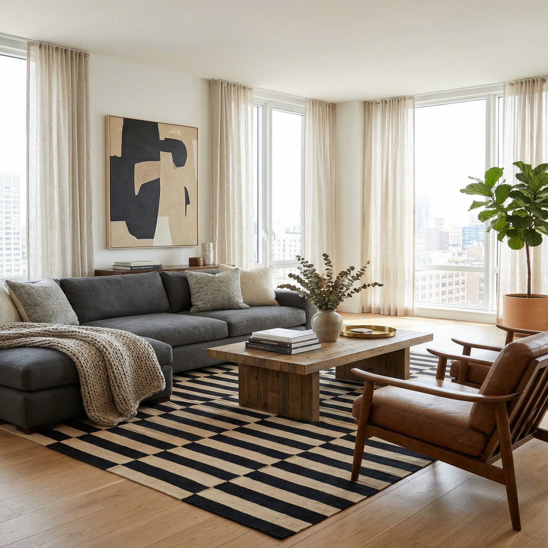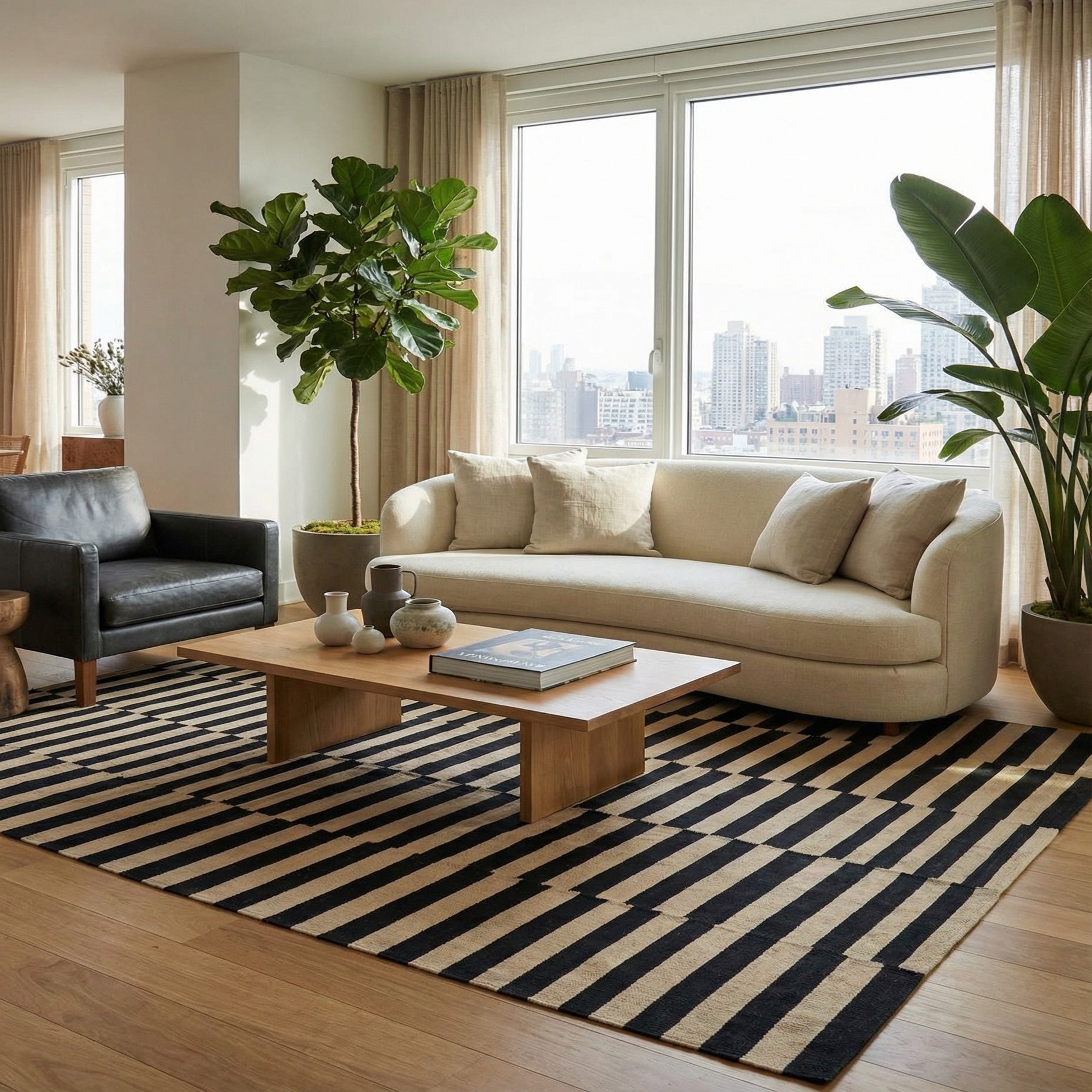 Primary color is Ivory. Colors in this rug include: Ivory, Black.