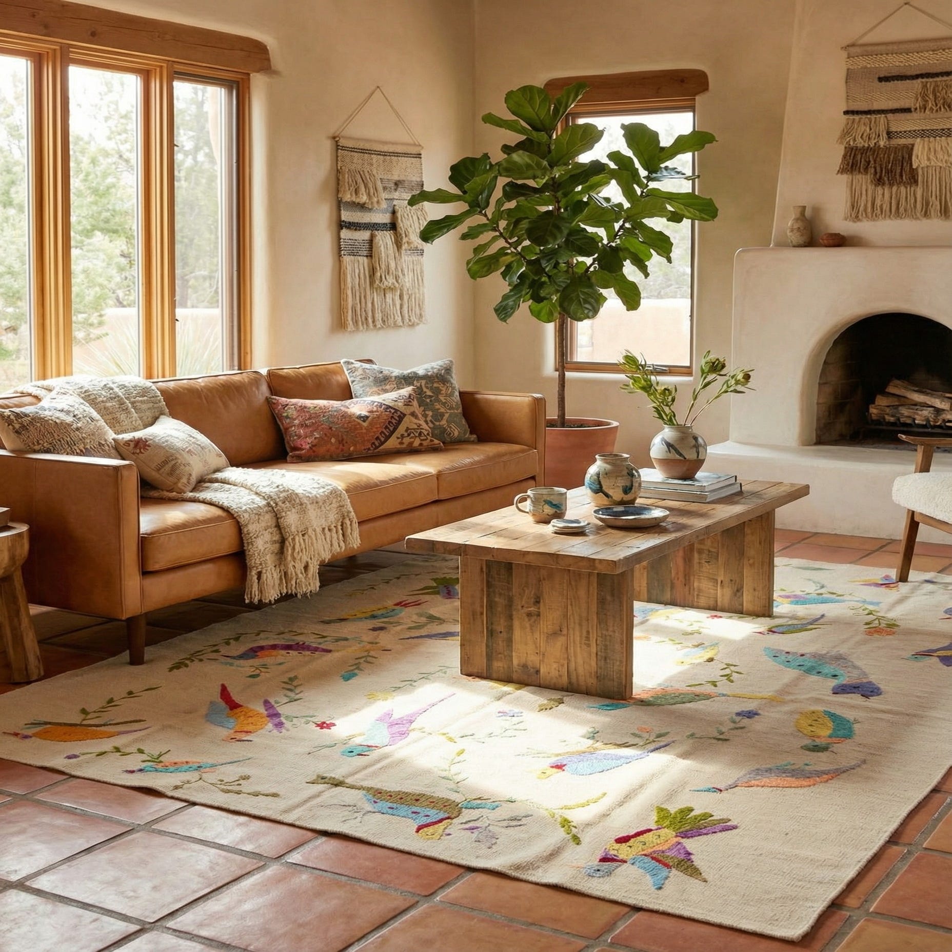 5' 9 x 7' 5 Hand Woven Kilim Suzani Wool Rug