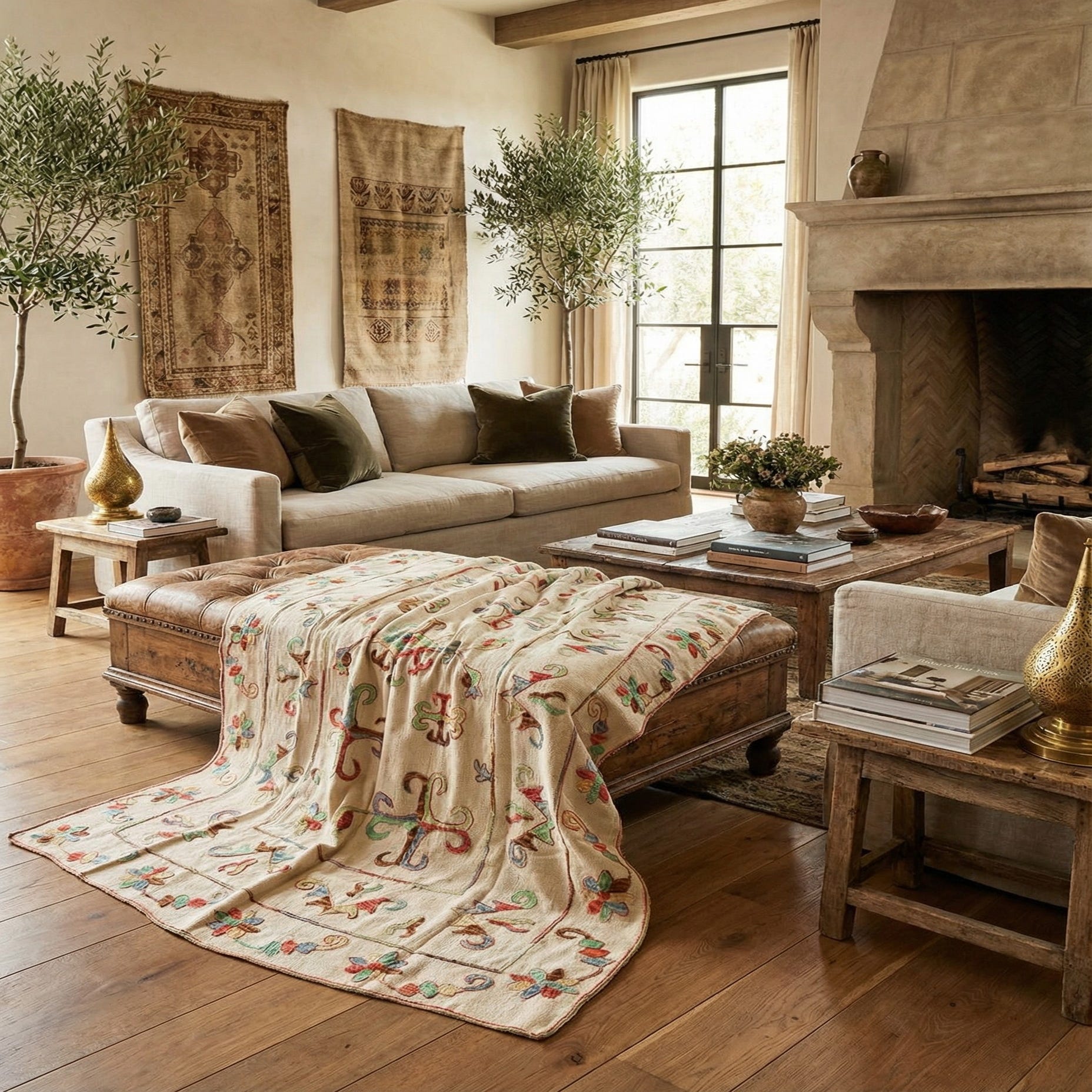 5' 5 x 7' 8 Hand Woven Kilim Suzani Wool Rug