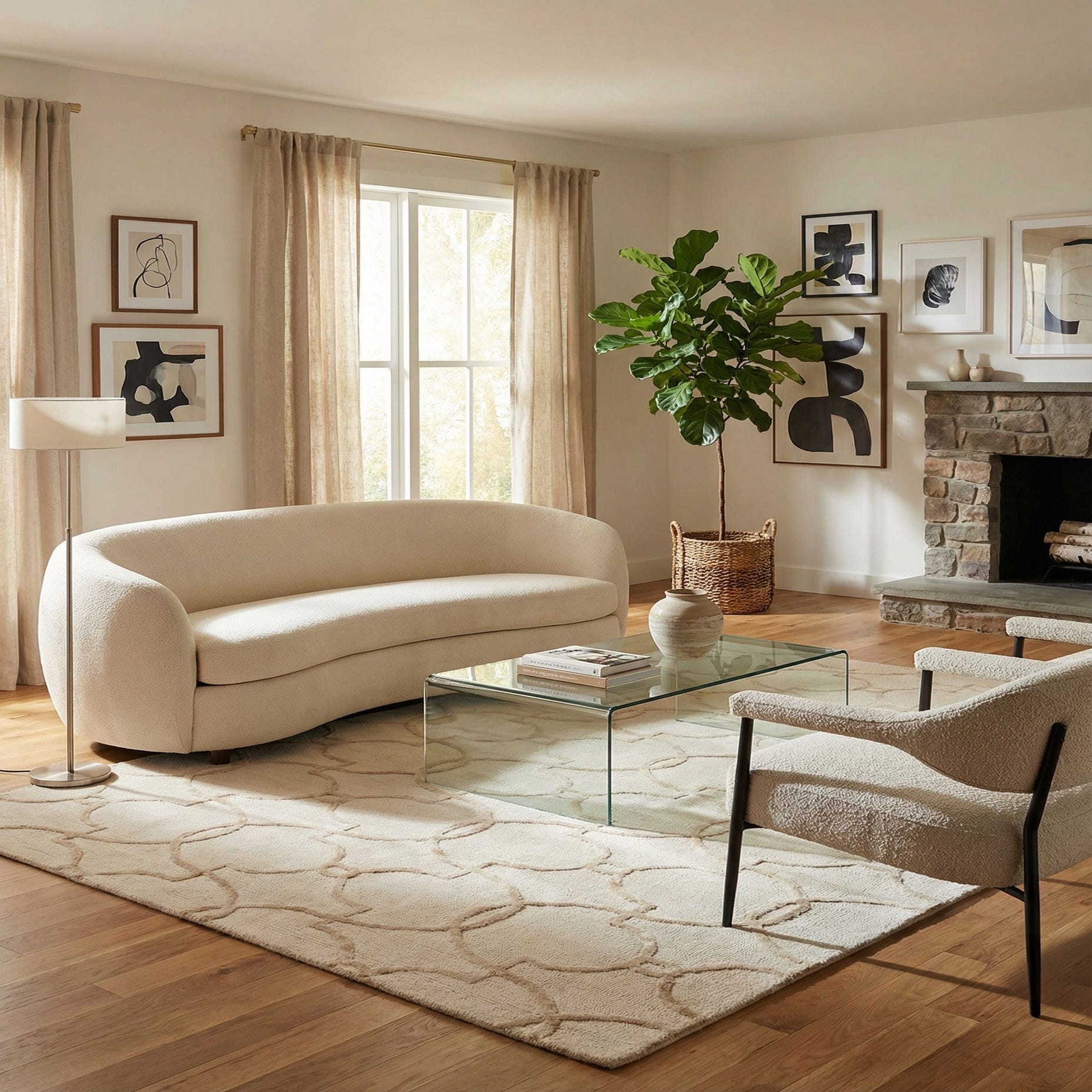 Primary color is Ivory. Colors in this rug include: Ivory, Beige.