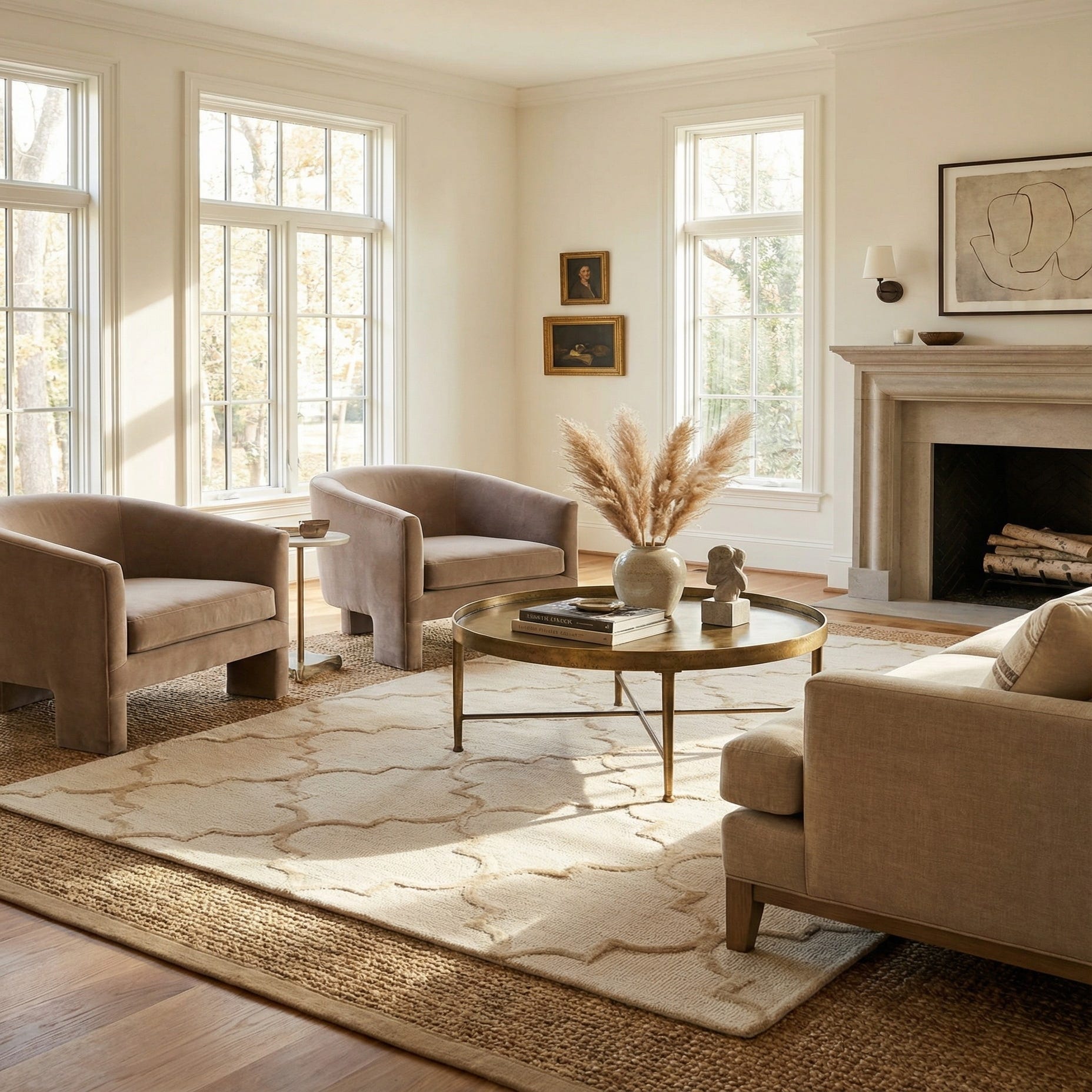 Primary color is Ivory. Colors in this rug include: Ivory, Beige.