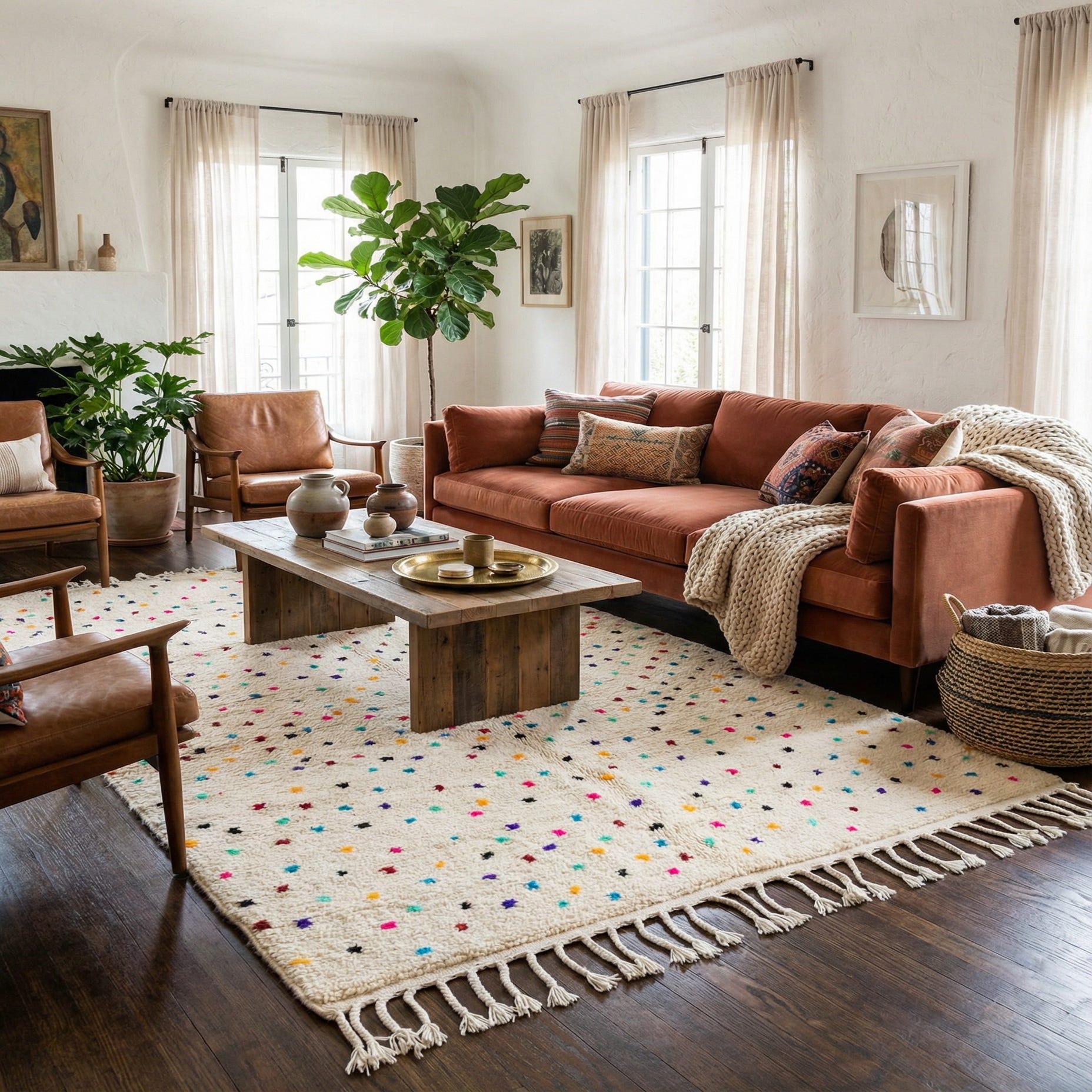 4' 8 x 8' Hand Knotted Moroccan Wool Rug