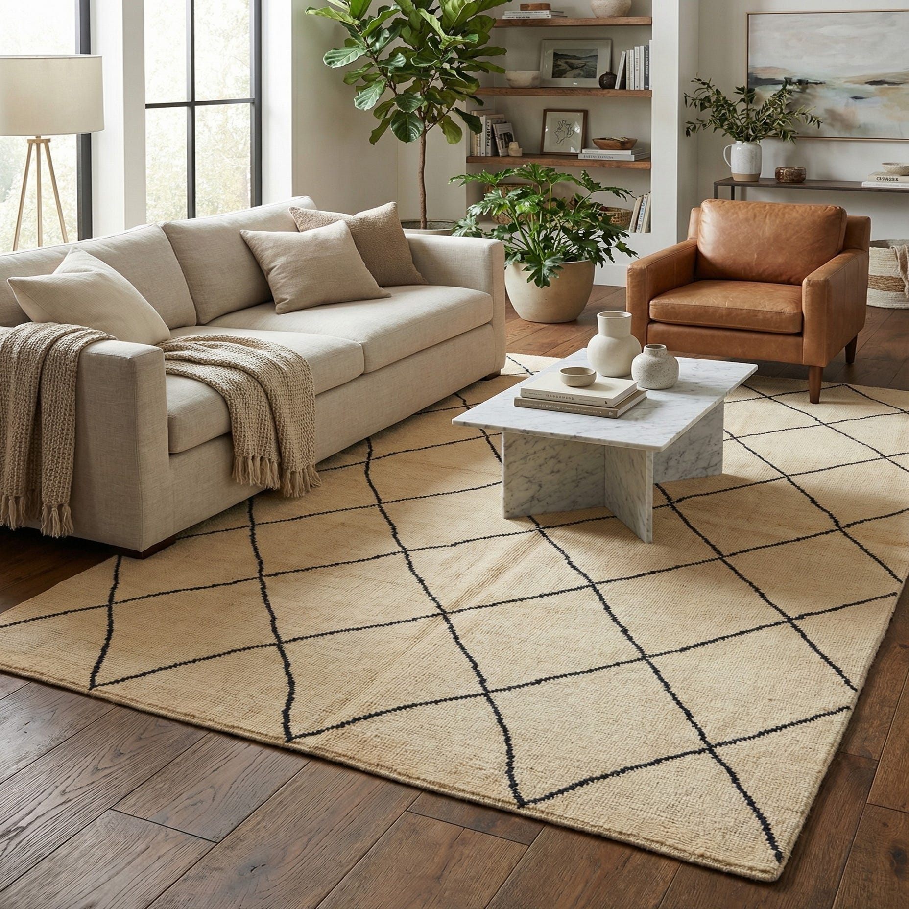 Primary color is Ivory. Colors in this rug include: Ivory, Black.