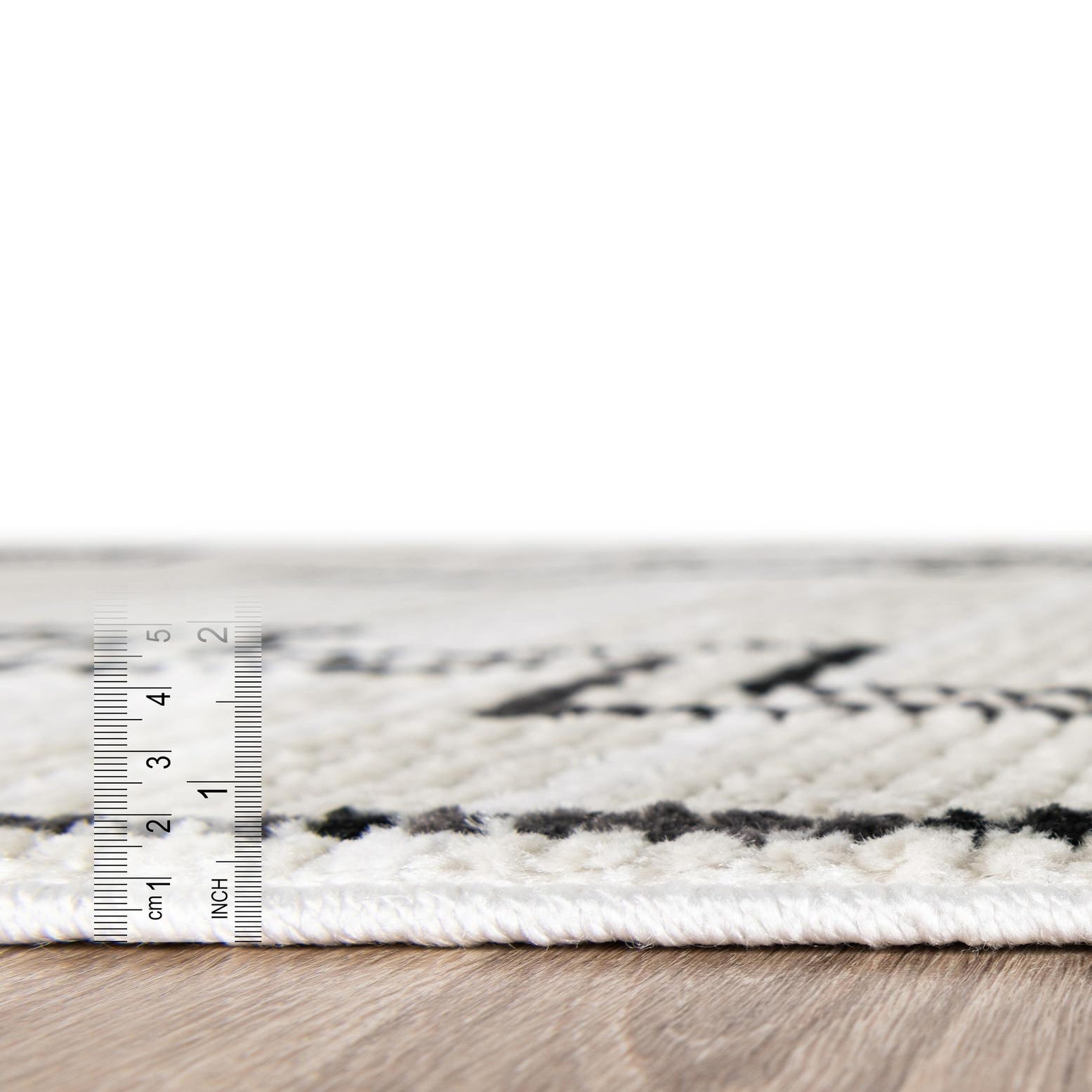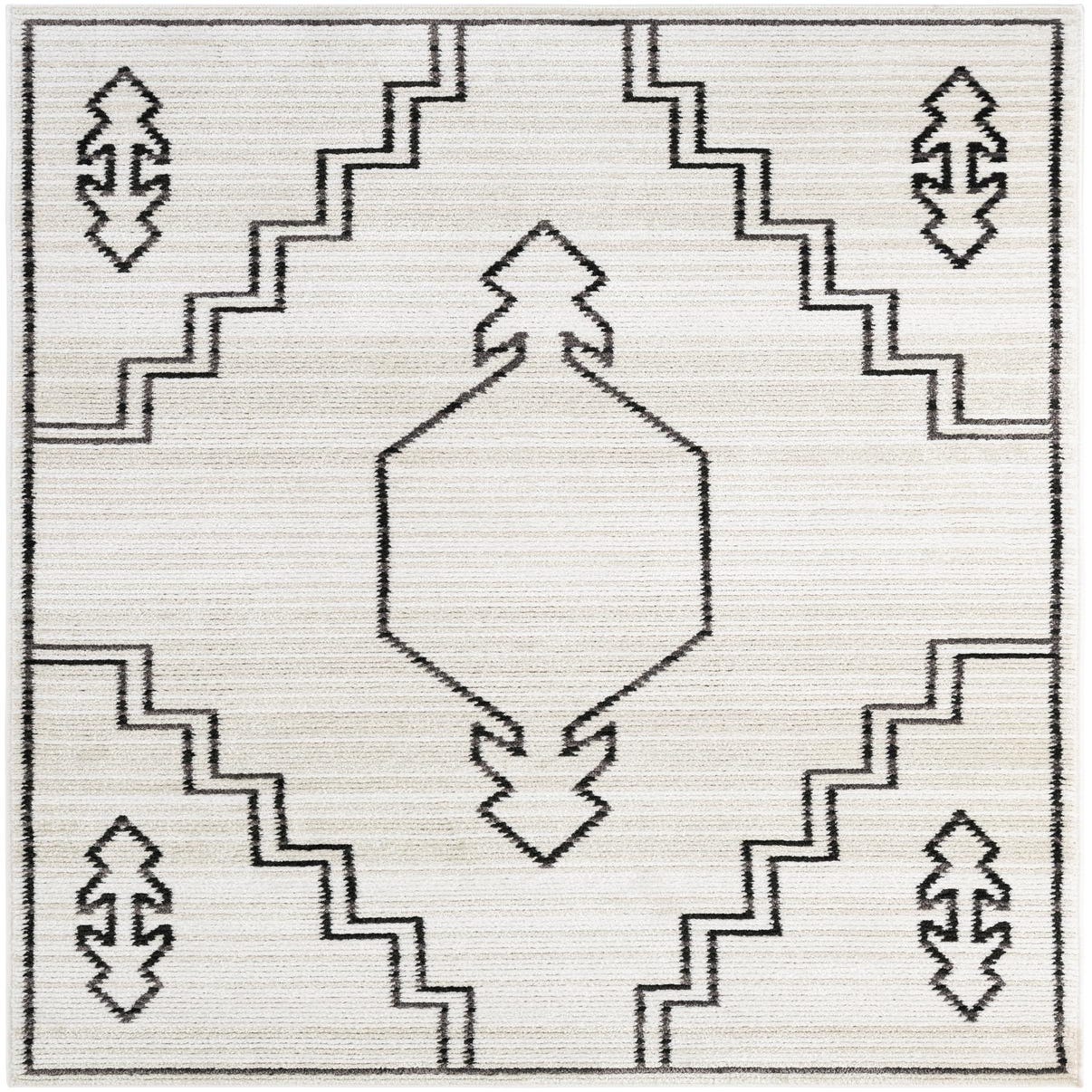 Primary color is Ivory. Colors in this rug include: Ivory, Black.