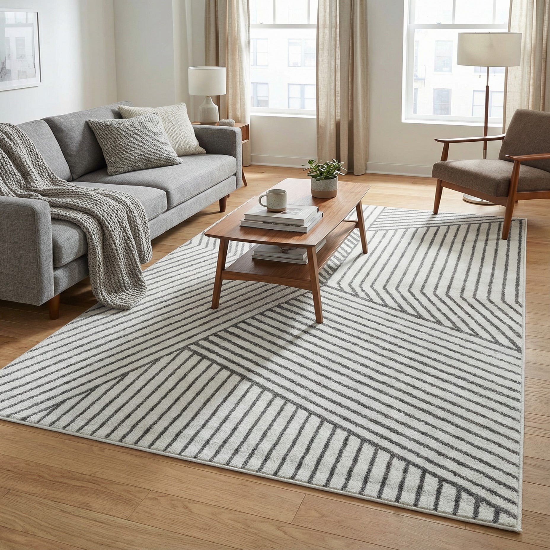 Primary color is Ivory. Colors in this rug include: Ivory, Gray.