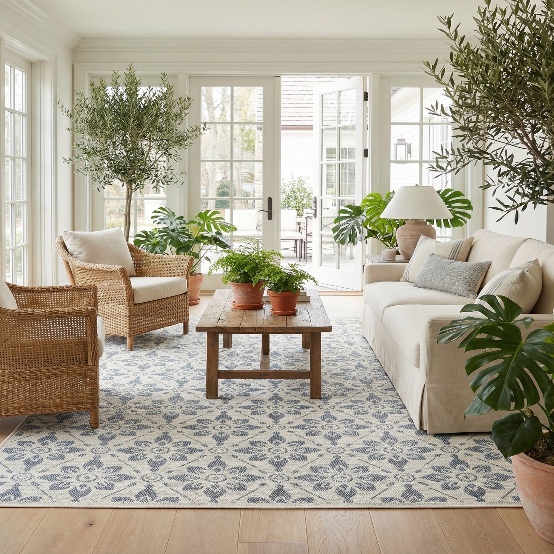 5' 3 x 7' 7 Washable Botanical Indoor / Outdoor Rug