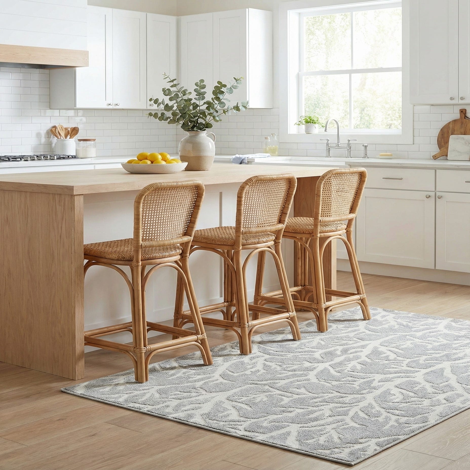 Primary color is Ivory. Colors in this rug include: Ivory, Silver.