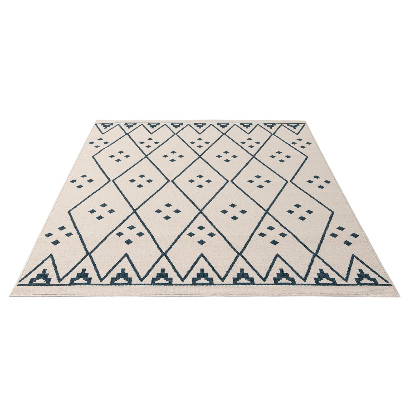 Primary color is Ivory. Colors in this rug include: Ivory, Blue.