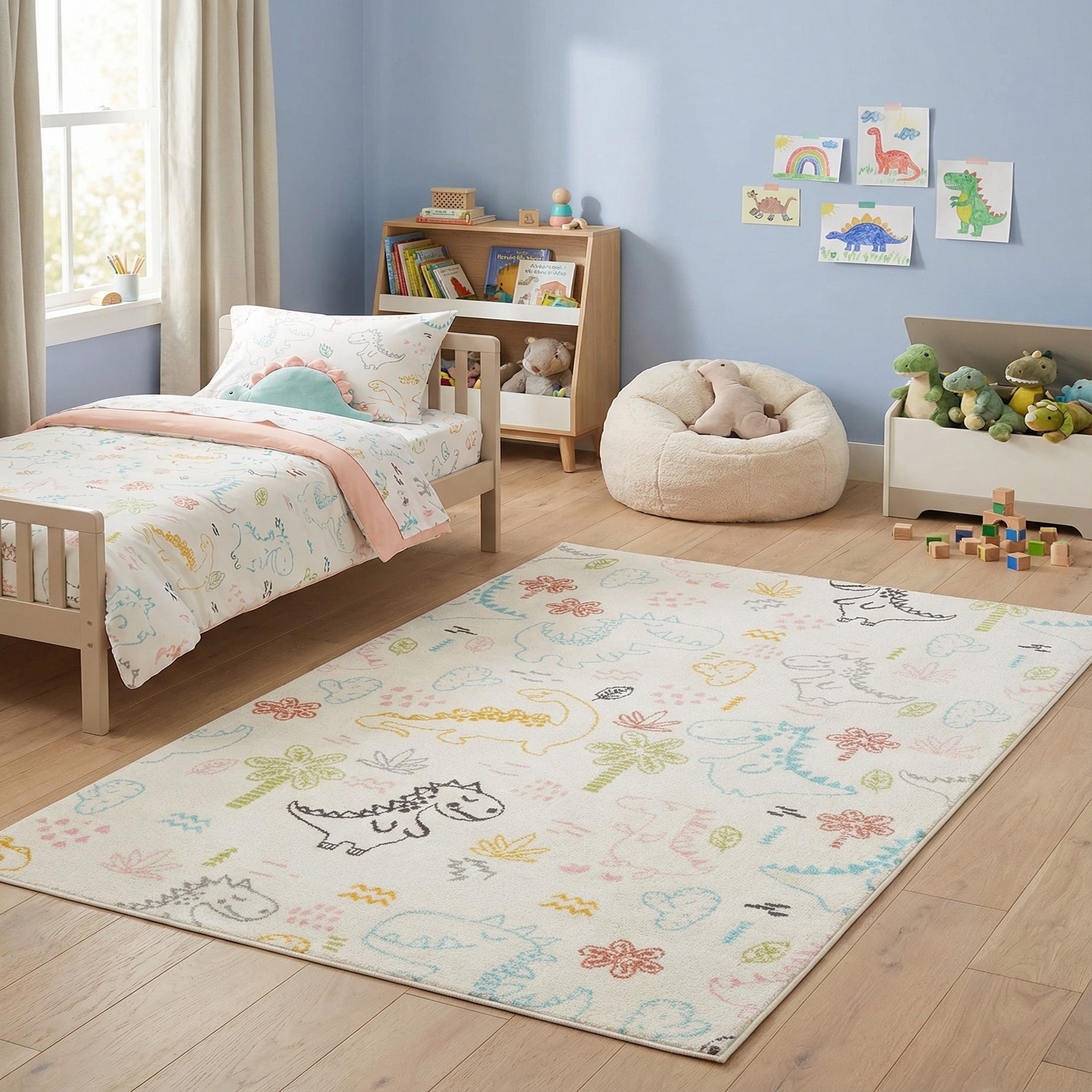 5' 3 x 8' Dinosaur Whimsy Kids Rug