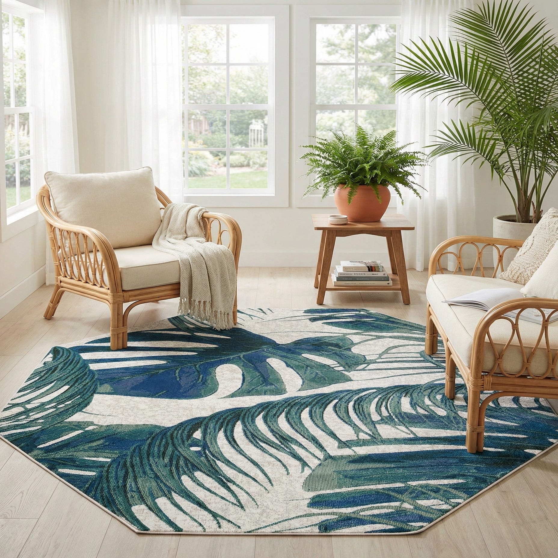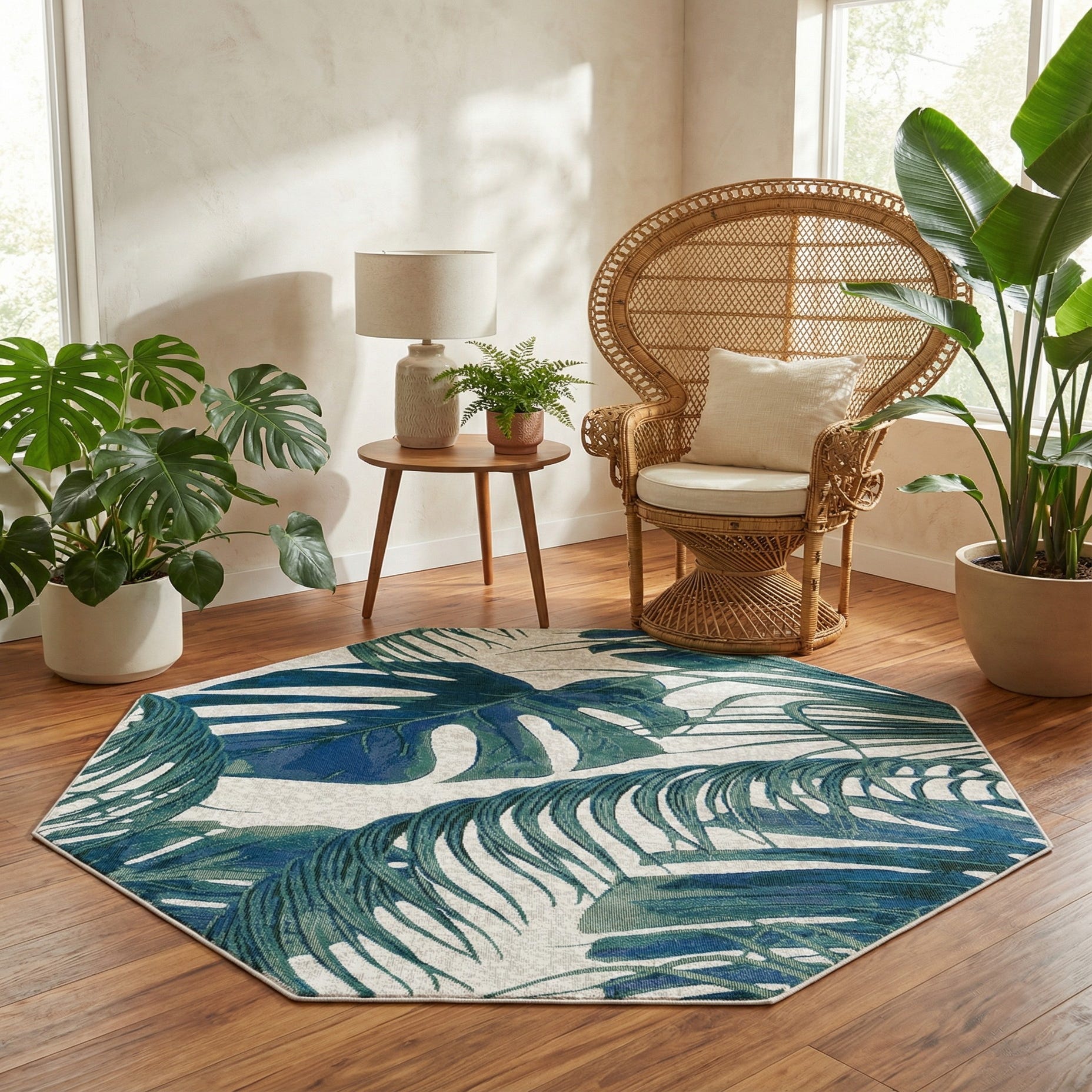 Primary color is Ivory. Colors in this rug include: Ivory, Blue, Gray, Green.