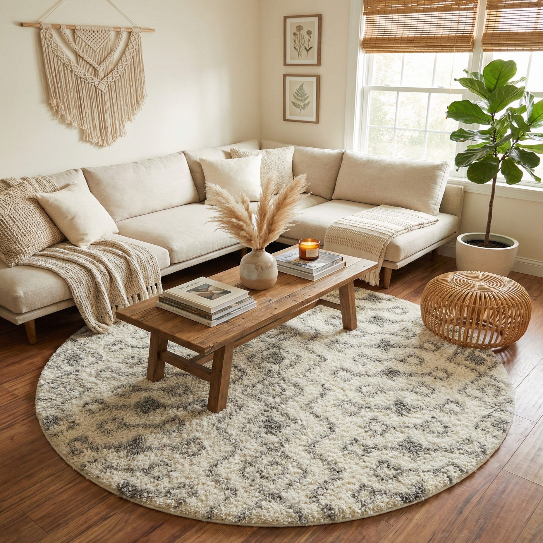 Detail image of 6' x 6' Moroccan Trellis Shag Round Rug