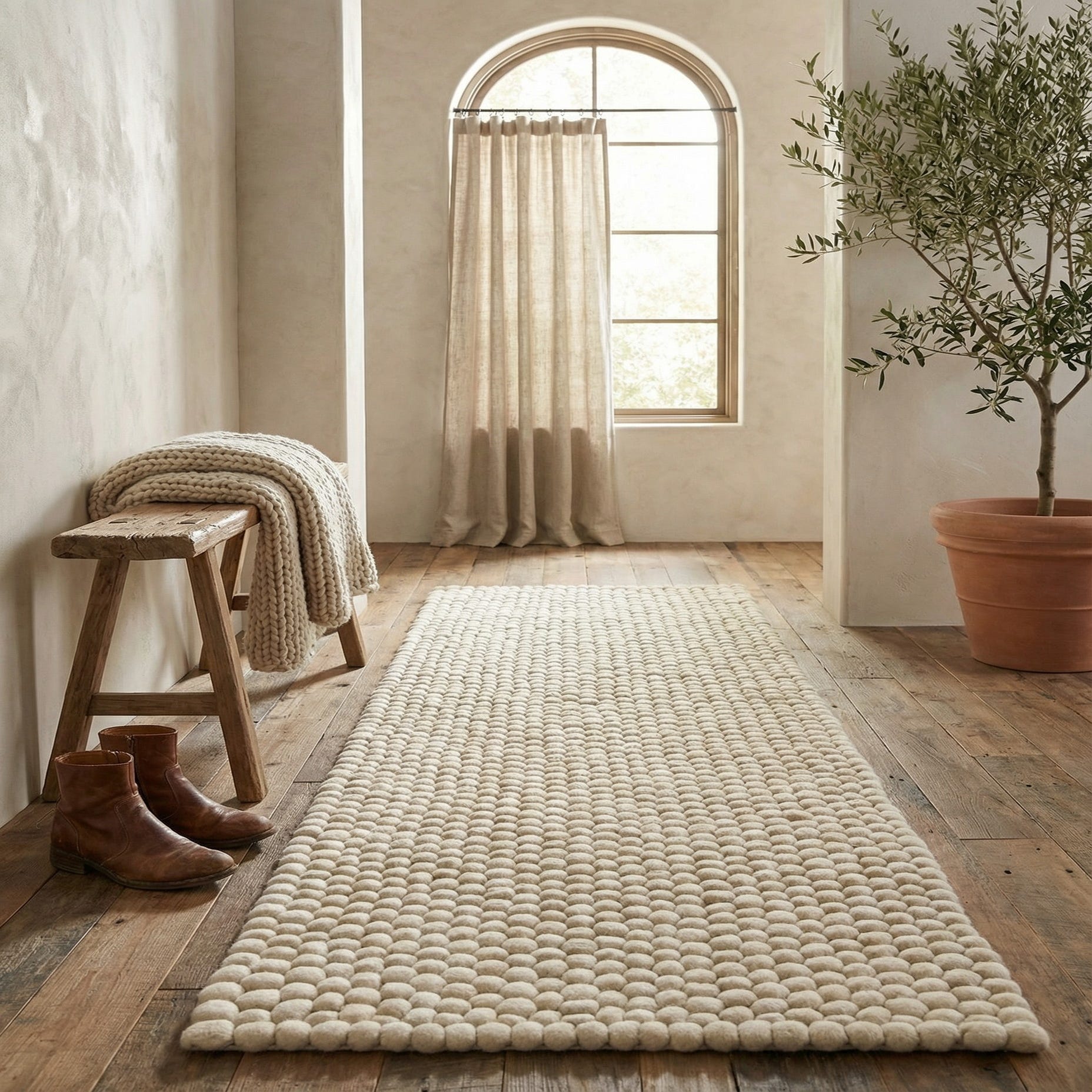 2' 2 x 6' 1 Felt Ball Wool Runner Rug