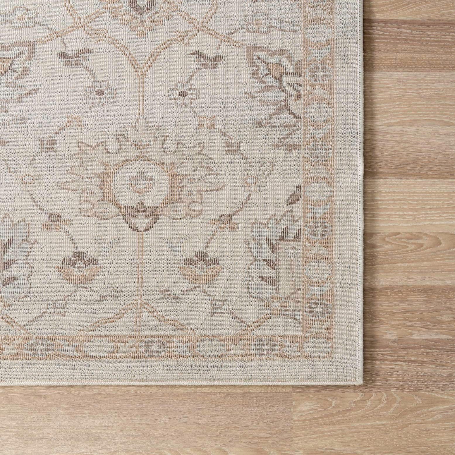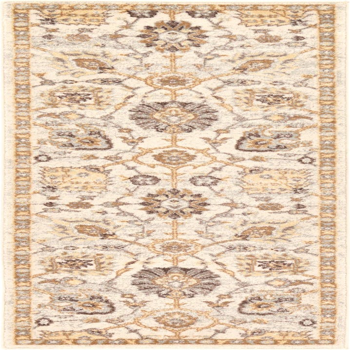 Primary color is Ivory. Colors in this rug include: Ivory, Brown, Cream, Gray, Tan.