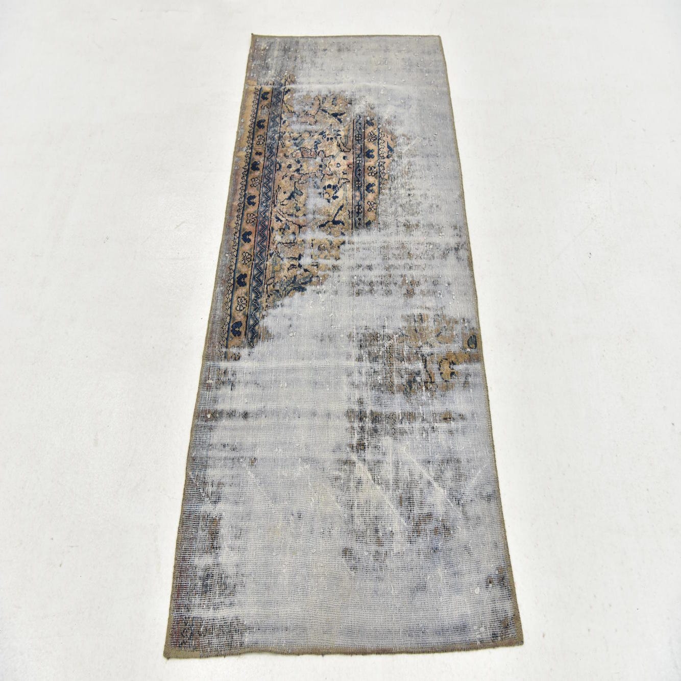 This Persian Ultra Vintage rug is an antique Persian Rug that has been washed, over-dyed, and then shaved down to a low pile. Look at the detail pictures to fully appreciate the uniqueness of this piece.