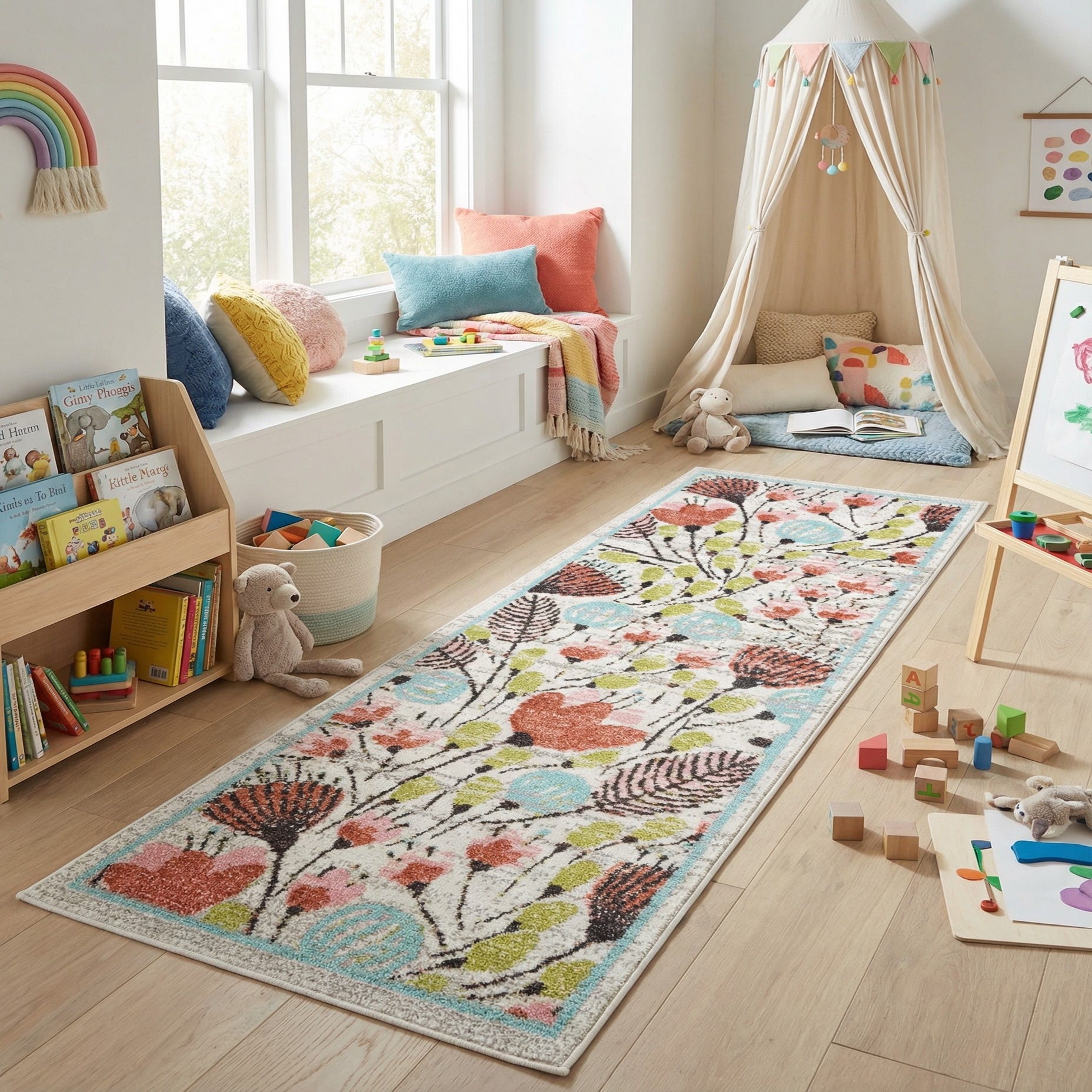 2' 2 x 6' Flowers Whimsy Kids Runner Rug