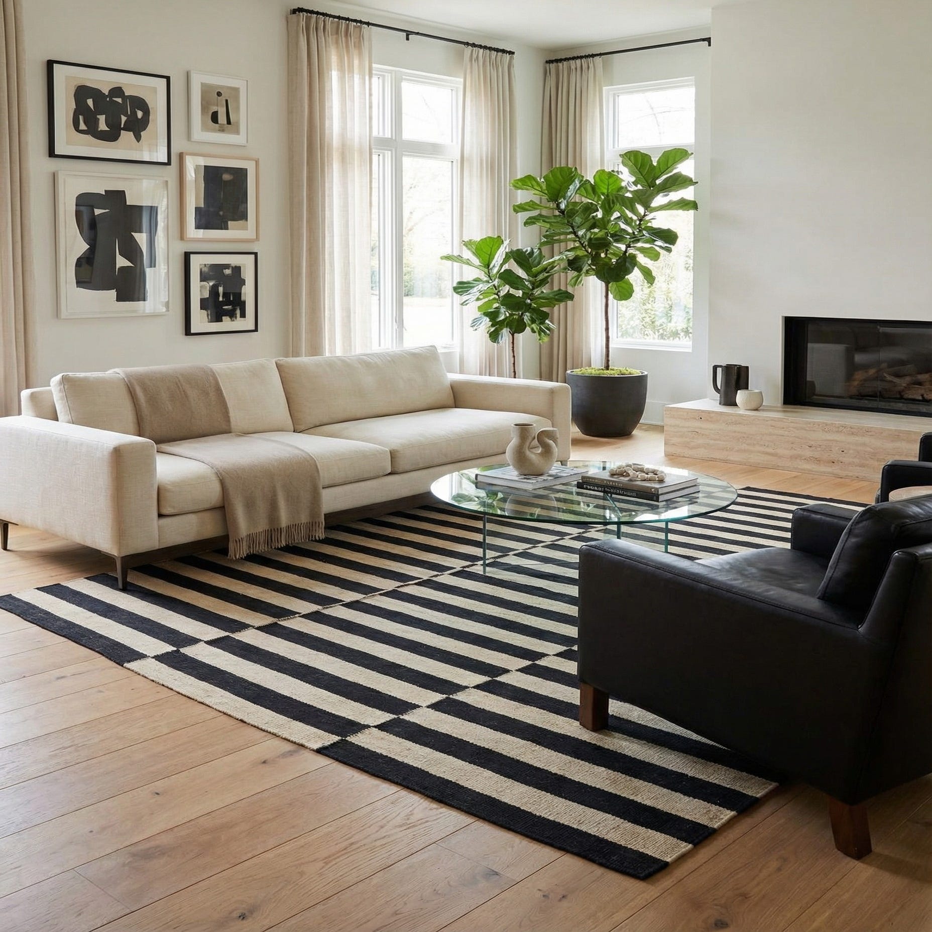 Primary color is Ivory. Colors in this rug include: Ivory, Black.