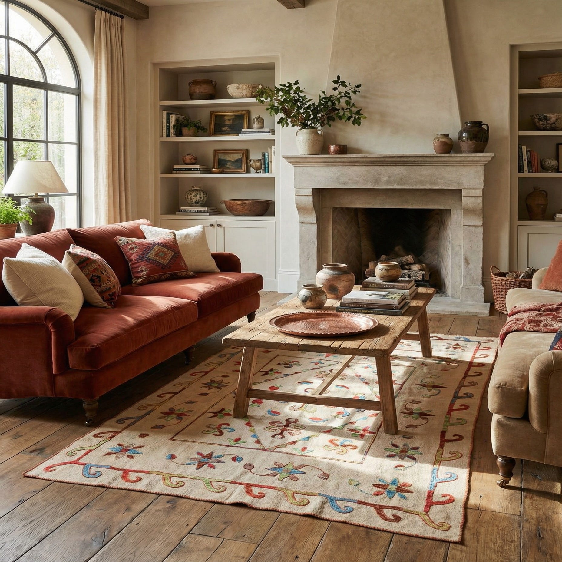5' 4 x 6' 4 Hand Woven Kilim Suzani Wool Square Rug