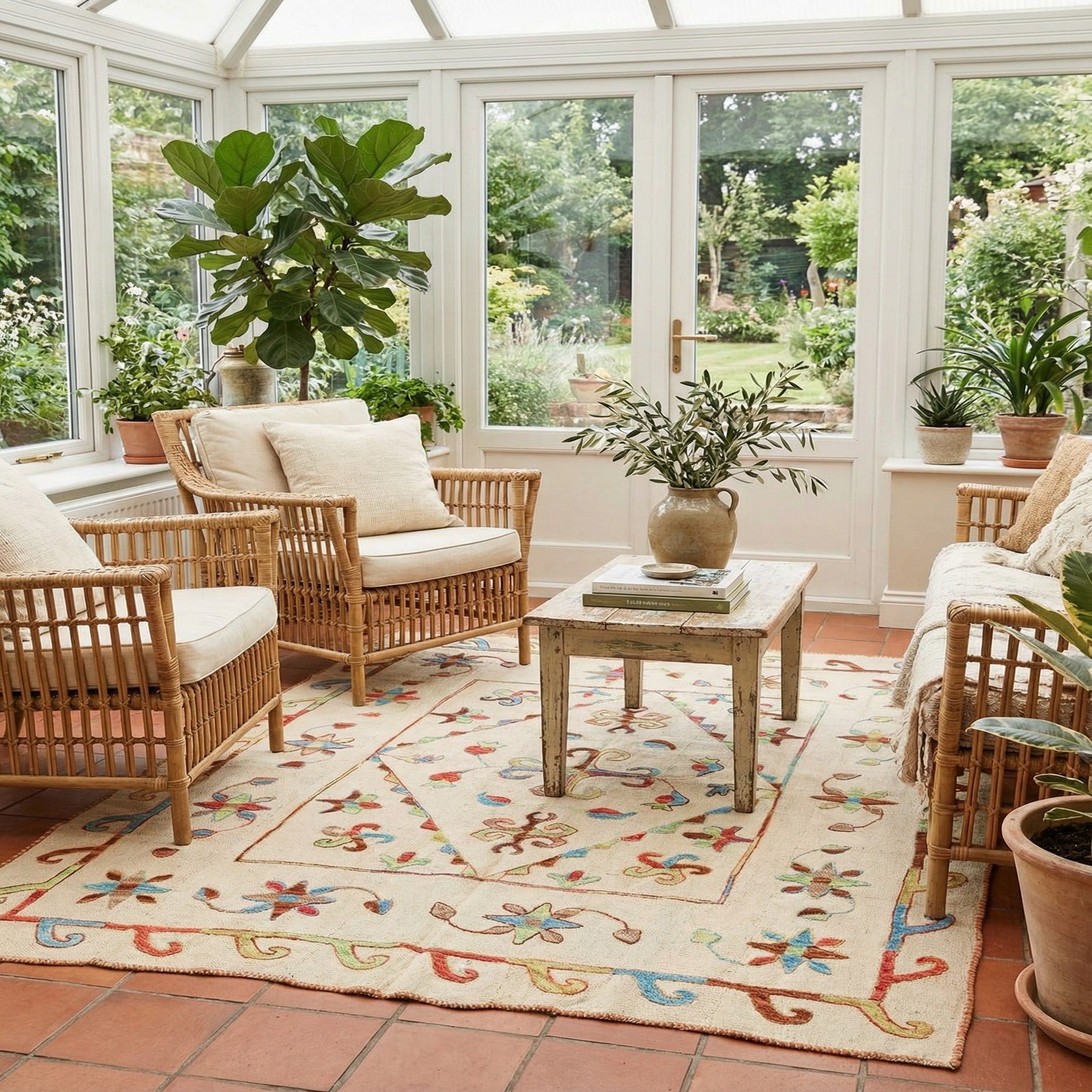 Detail image of 5' 4 x 6' 4  Hand Woven Kilim Suzani Wool Square Rug