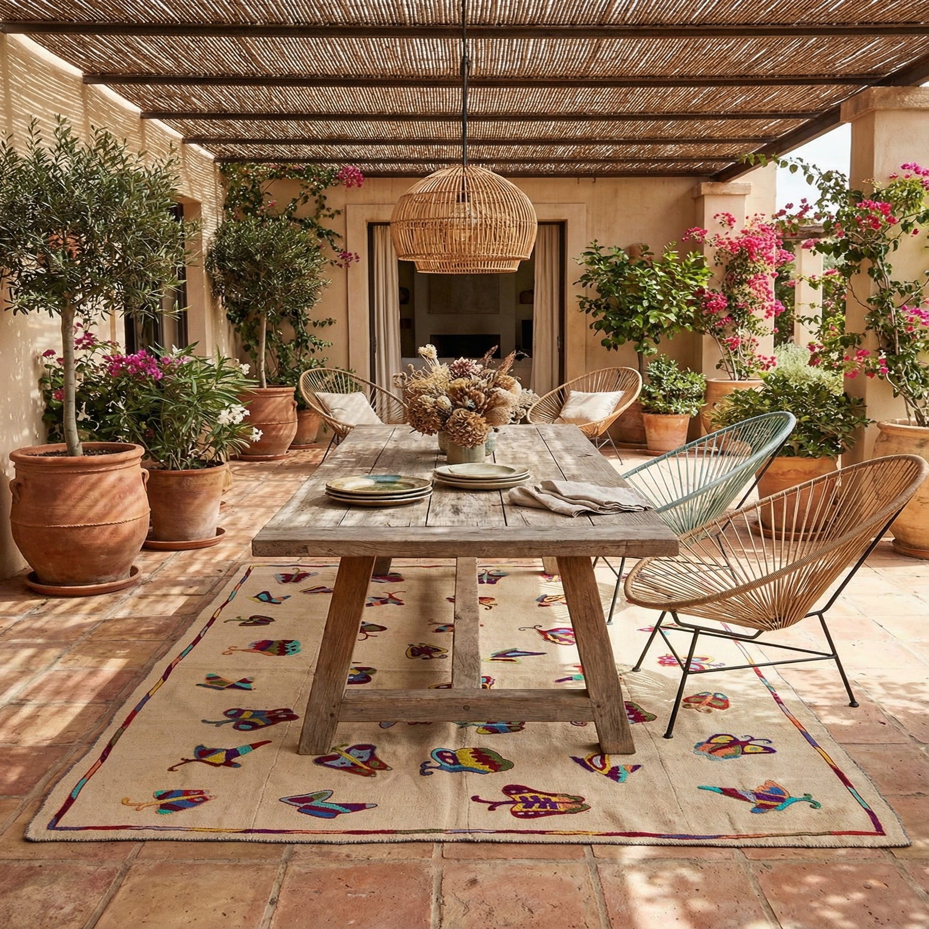 5' 2 x 6' 8 Hand Woven Kilim Suzani Wool Square Rug