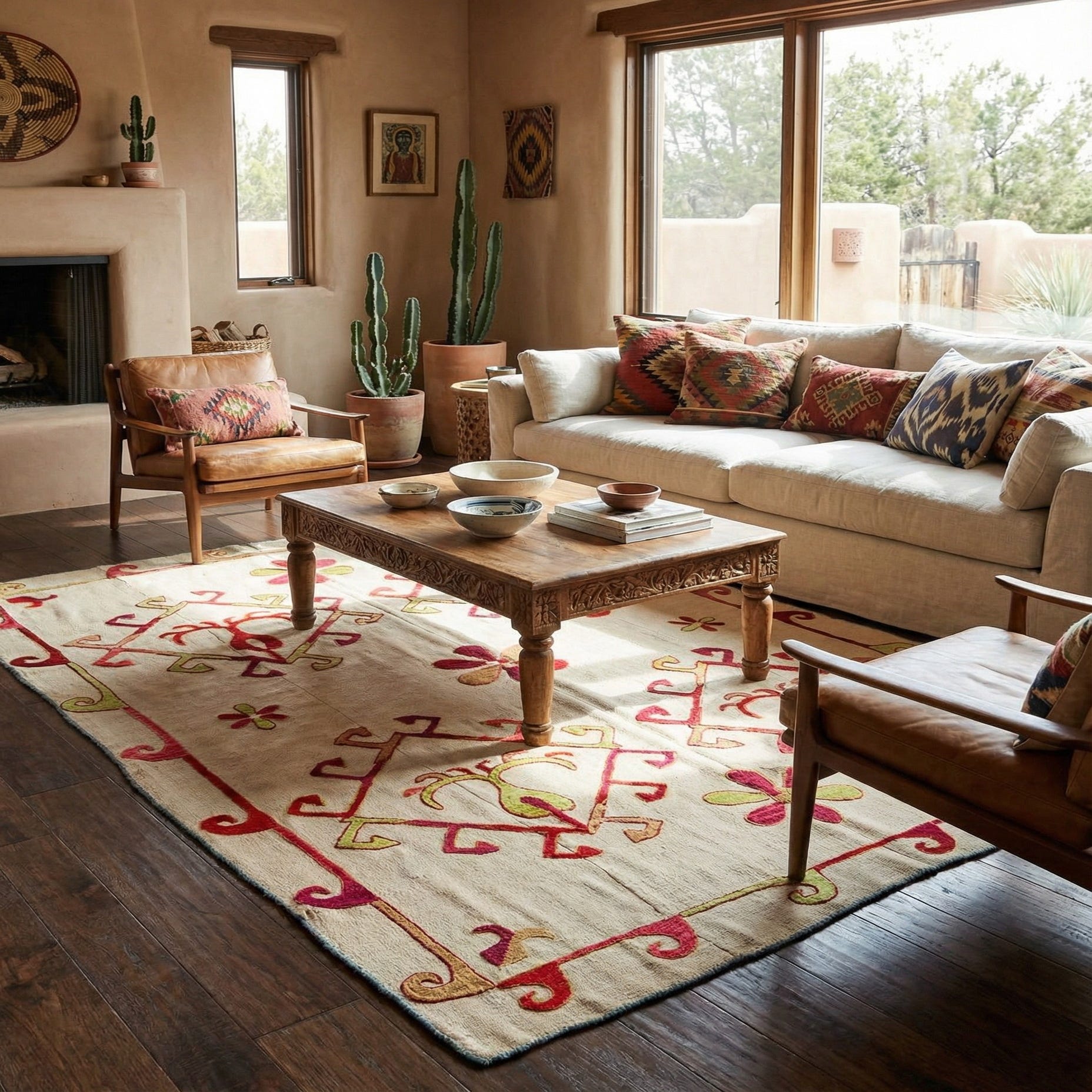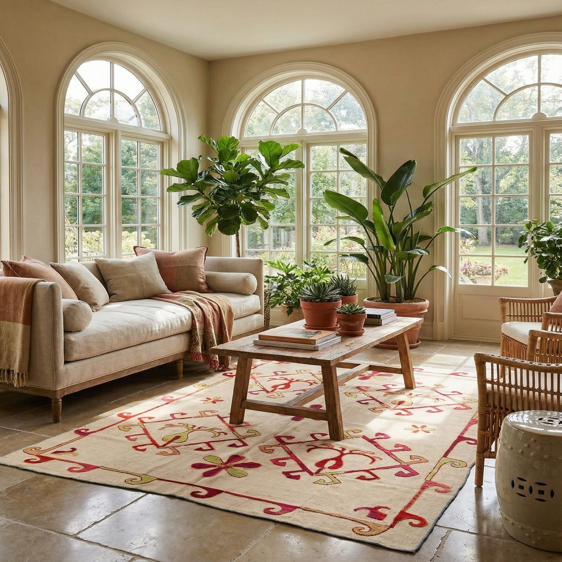 Detail image of 4' 10 x 6' 9  Hand Woven Kilim Suzani Wool Square Rug