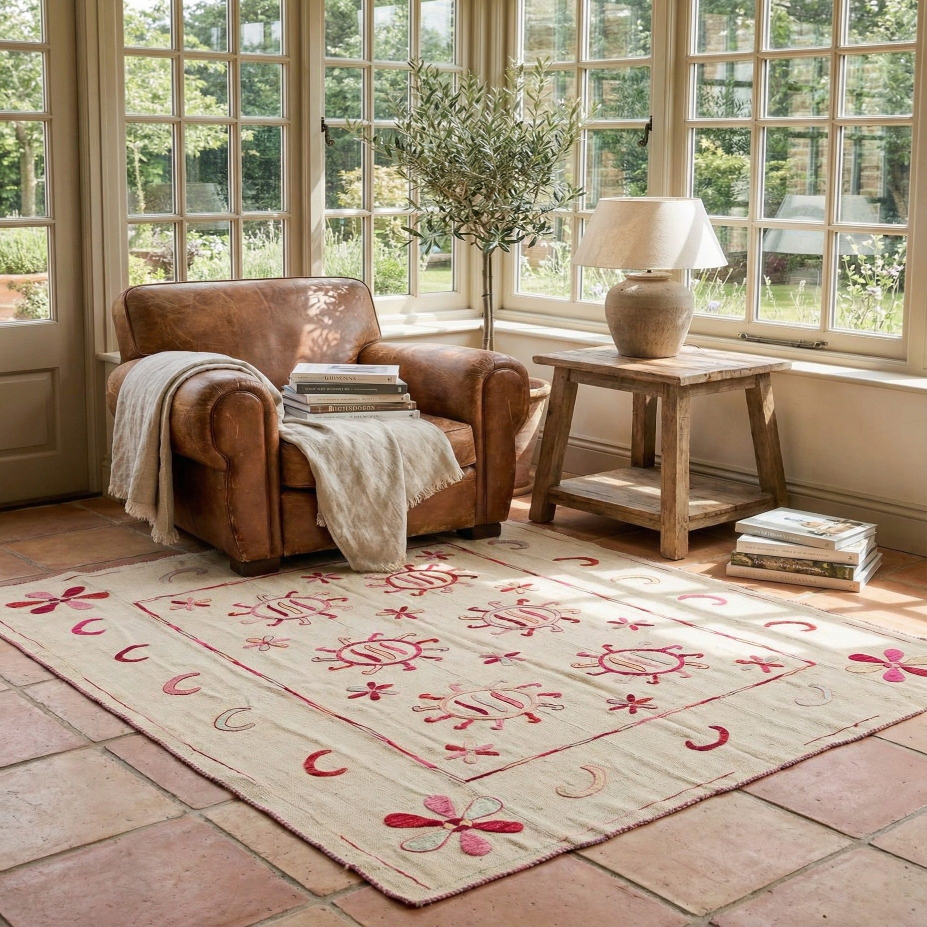 Detail image of 5' 4 x 6' 8  Hand Woven Kilim Suzani Wool Square Rug