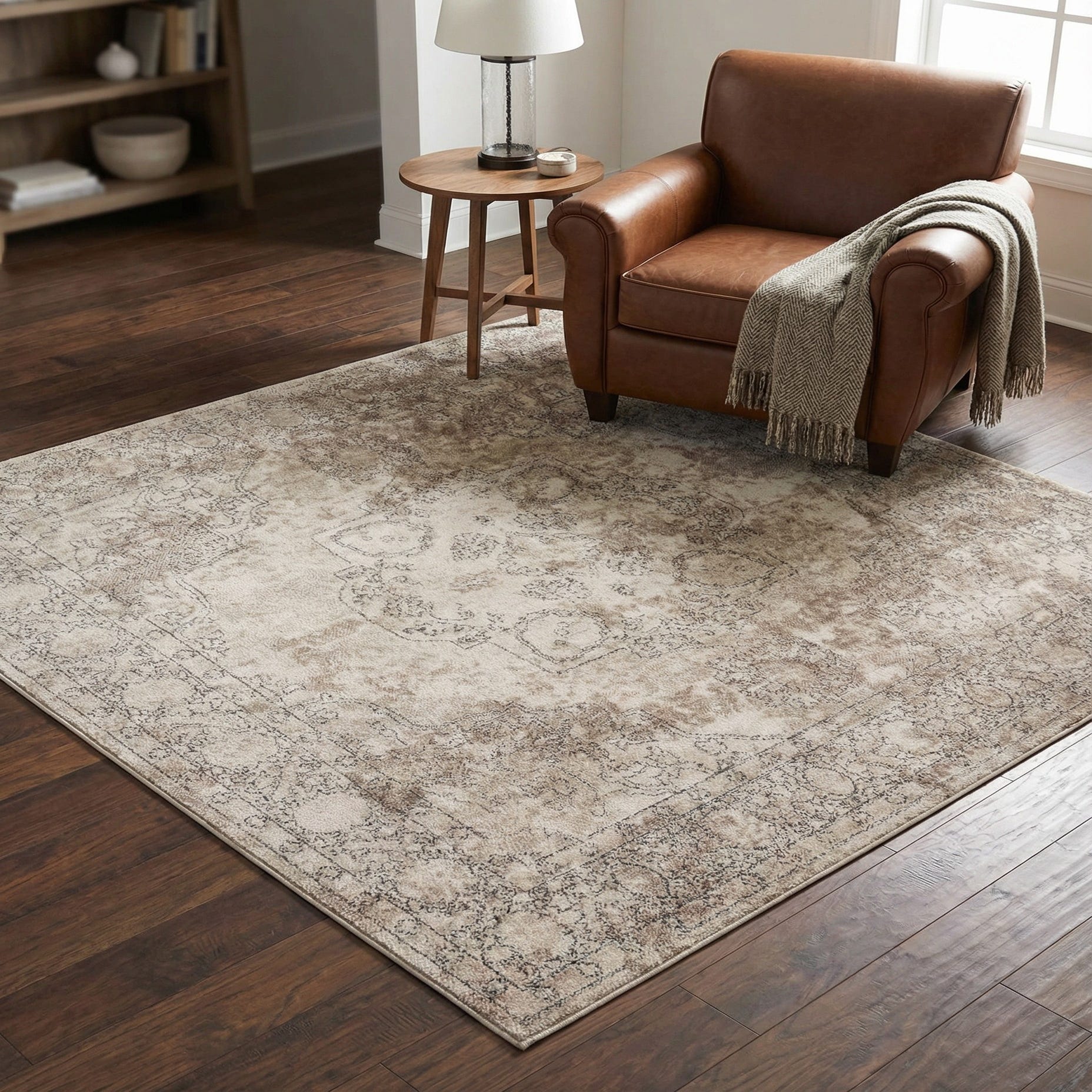 Primary color is Ivory. Colors in this rug include: Ivory, Beige, Gray.