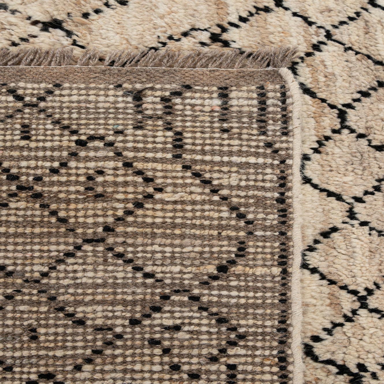 Primary color is Ivory. Colors in this rug include: Ivory, Black, Brown.