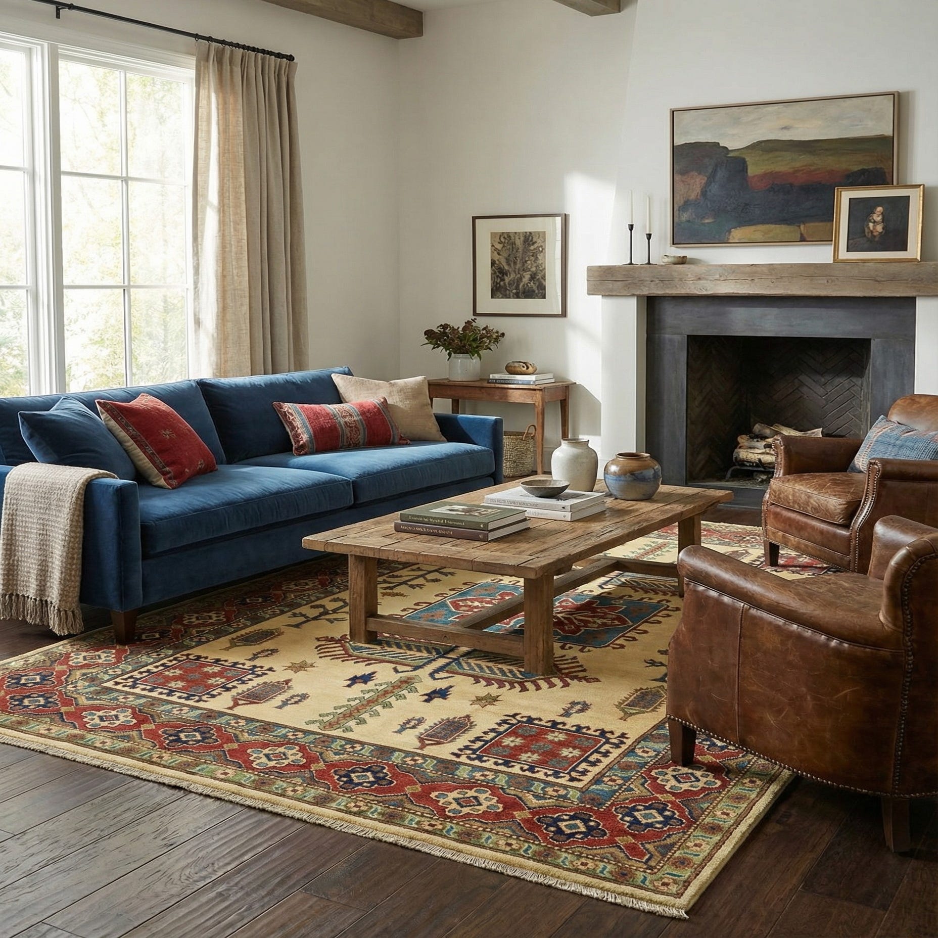 Primary image 6' 3 x 9'  Hand Knotted Kazak Rug